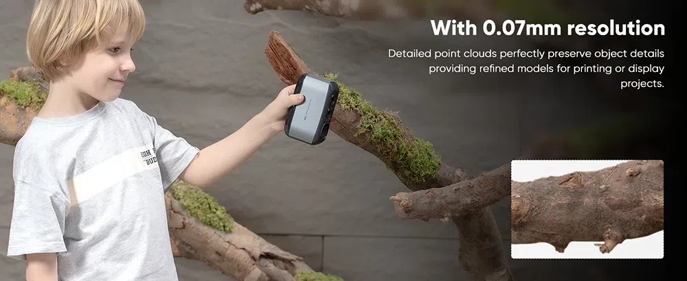 Mit einer Einzelbild-Genauigkeit von 0,03 mm und einer Auflösung von 0,07 mm liefert der Moose präzise Punktwolken, die sich für den 3D-Druck z.B. mit dem Bambu Lab A1 Mini oder Visualisierungen in hoher Qualität eignen. Die 24-Bit-Farbkamera sorgt dafür, dass gescannte Objekte auch farbenfroh dargestellt werden. Das macht den Moose-Scanner besonders für detaillierte Modelle interessant, die nicht nur durch Präzision, sondern auch durch Farbe und Textur überzeugen sollen. Gescannt wird mit 10 Bildern pro Sekunde. Das ist okay für einen 3D-Scanner dieser Preisklasse.