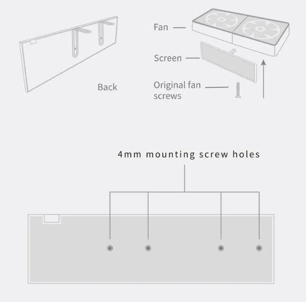 Bei der zweiten Variante geht man eher wieder in das Gehäuseinnere und bekommt eine Halterung, die dafür gedacht ist, sie an die Lüfter eines Radiators zu befestigen. Es ist aber auch ein Clip mit dabei, womit das Display horizontal aufrecht stehen soll. Bei den Spezifikationen ist man hier sehr ähnlich, die Auflösung und Größe ist gleich. Insgesamt misst der Bildschirm 237 x 67 mm.