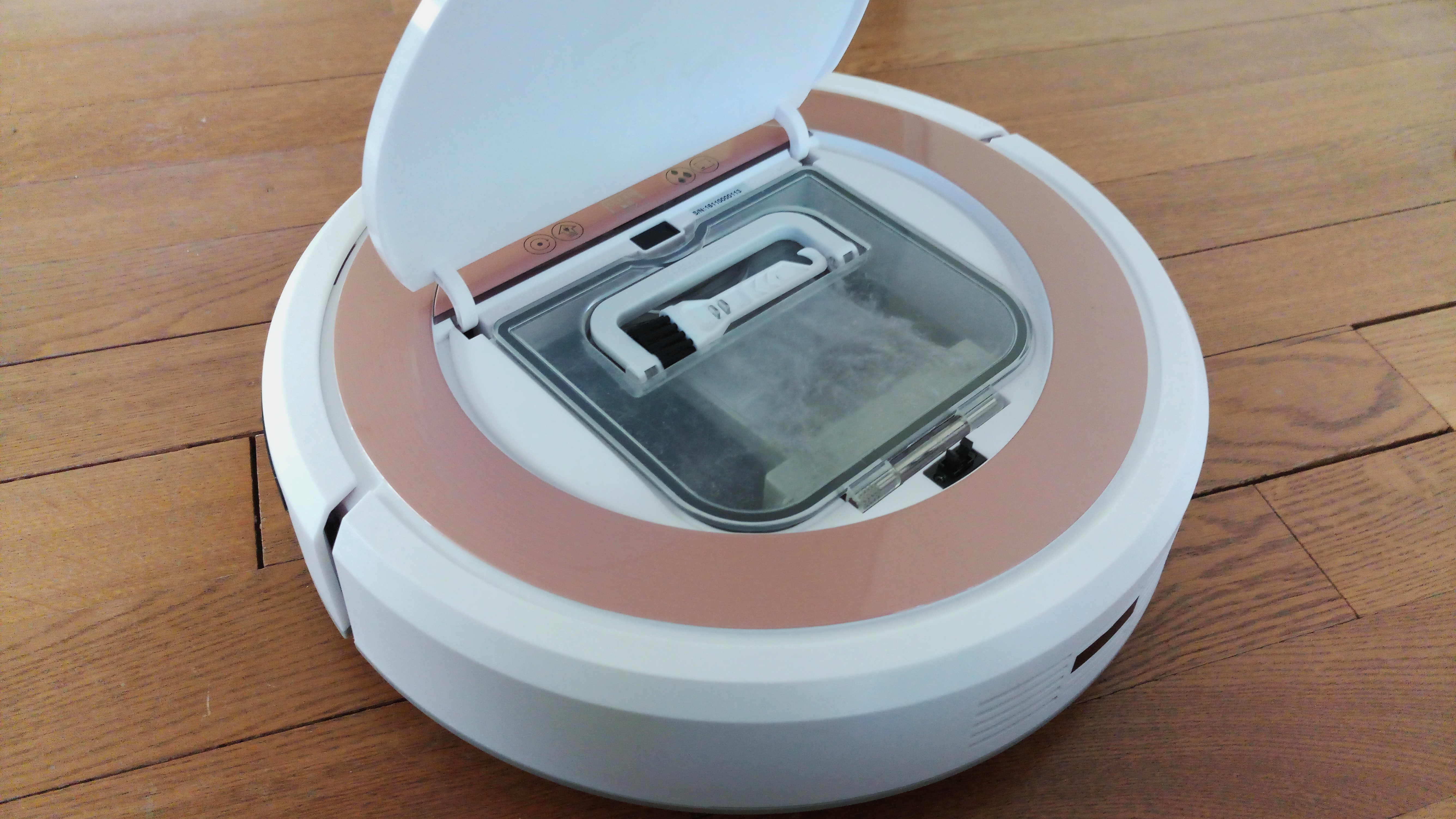 Nachdem ich den Saugroboter bei mir Zuhause seine Runden drehen ließ während ich selbst unterwegs war, fand ich ihn wieder in seiner Ladestation. Diese suchte er automatisch bei niedrigem Akkustand auf. Nach dem Öffnen der Klappe, wo sich die Staubkammer drunter befindet, machte sich bemerkbar, dass der Sauger wohl ganze Arbeit geleistet hatte – in den Ecken aber Schwächen offenbarte. Sicherlich ist es schwer, bei der runden Form und Hindernis-Erkennung bis in die hinterste Ecke vordringen zu können. Somit lässt sich zur Saugleistung sagen: Der Robosauger saugt alles weg, dass sich nicht an Rändern oder in den hintersten Ecken befindet.