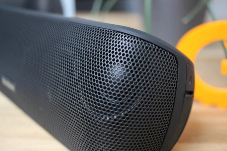 Dieser räumliche Klang entsteht vor allem durch die Position der Hochtöner, welche ganz links und rechts außen angebracht wurden. Sie sitzen so weit außen, dass sie den Schall nicht nur nach vorne abgeben, sondern auch leicht nach außen hin. Dadurch wirkt der Sound „größer“ als der Bluetooth Lautsprecher selbst ist.