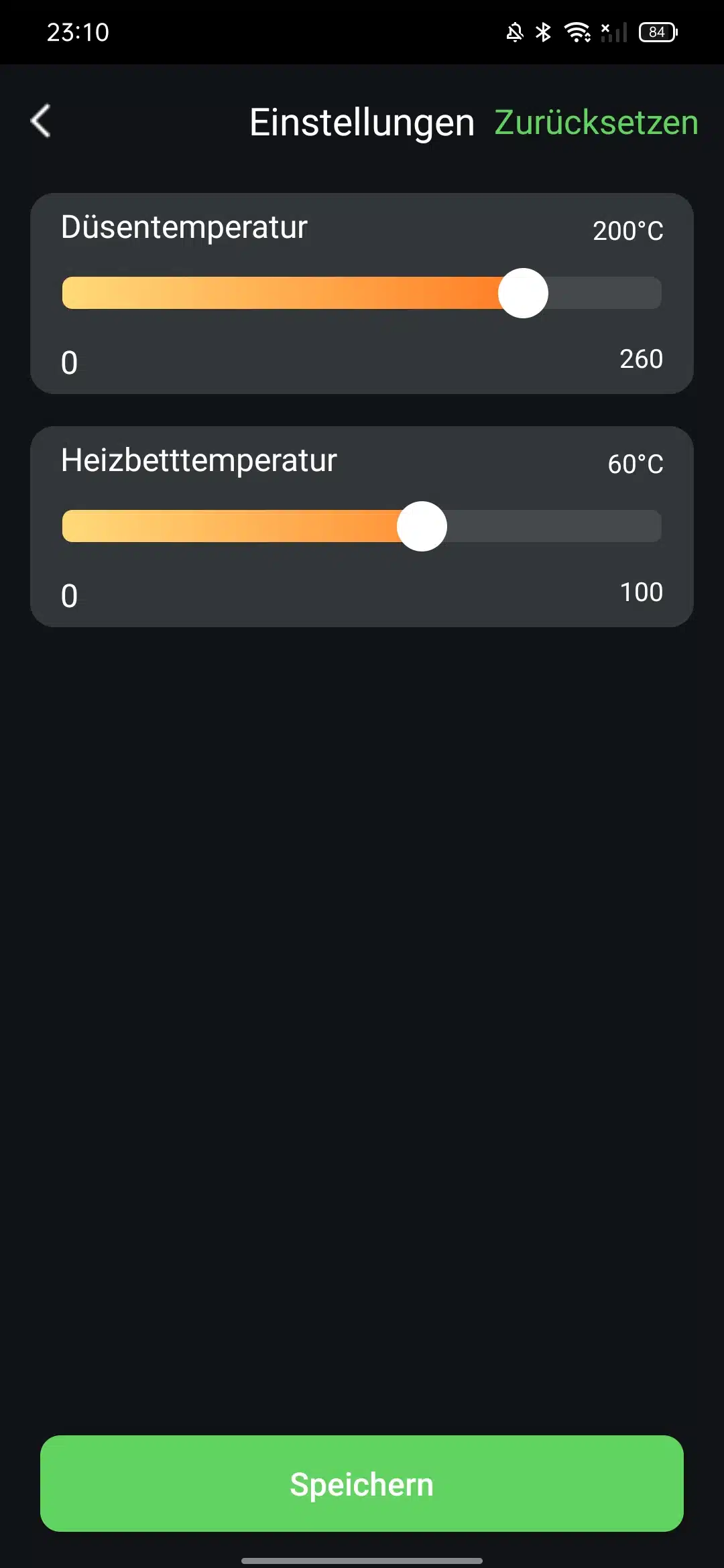 - 250mm/s, jetzt 500mm/s (für PLA)