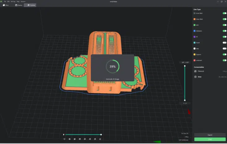 Beim AnkerMake Slicer (Version 0.7.4) handelt es sich um eine Fork des bekannten Ultimaker Cura-Slicers – allerdings (noch) ohne Arachne Engine, welche für eine bessere Druckqualität sorgt. Wer Cura also kennt, findet sich schnell zurecht. Weil A wie Anker wie AnkerMake zur Geltung kommen soll, gibt’s hier aber nun acode- statt gcode-Dateien. Letztere sind zwar auch kompatibel, müssen aber dann auf die KI-Funktion verzichten. Denn diese werden nur in die jeweilige acode-Datei integriert. Dabei handelt es sich um Modell-Informationen für die KI, die dann mit dem eigentlichen Druck abgeglichen werden. Anders als der gcode sind diese Informationen für uns aber nicht lesbar – immerhin kann man sich so an kryptischen Symbolen erfreuen.
