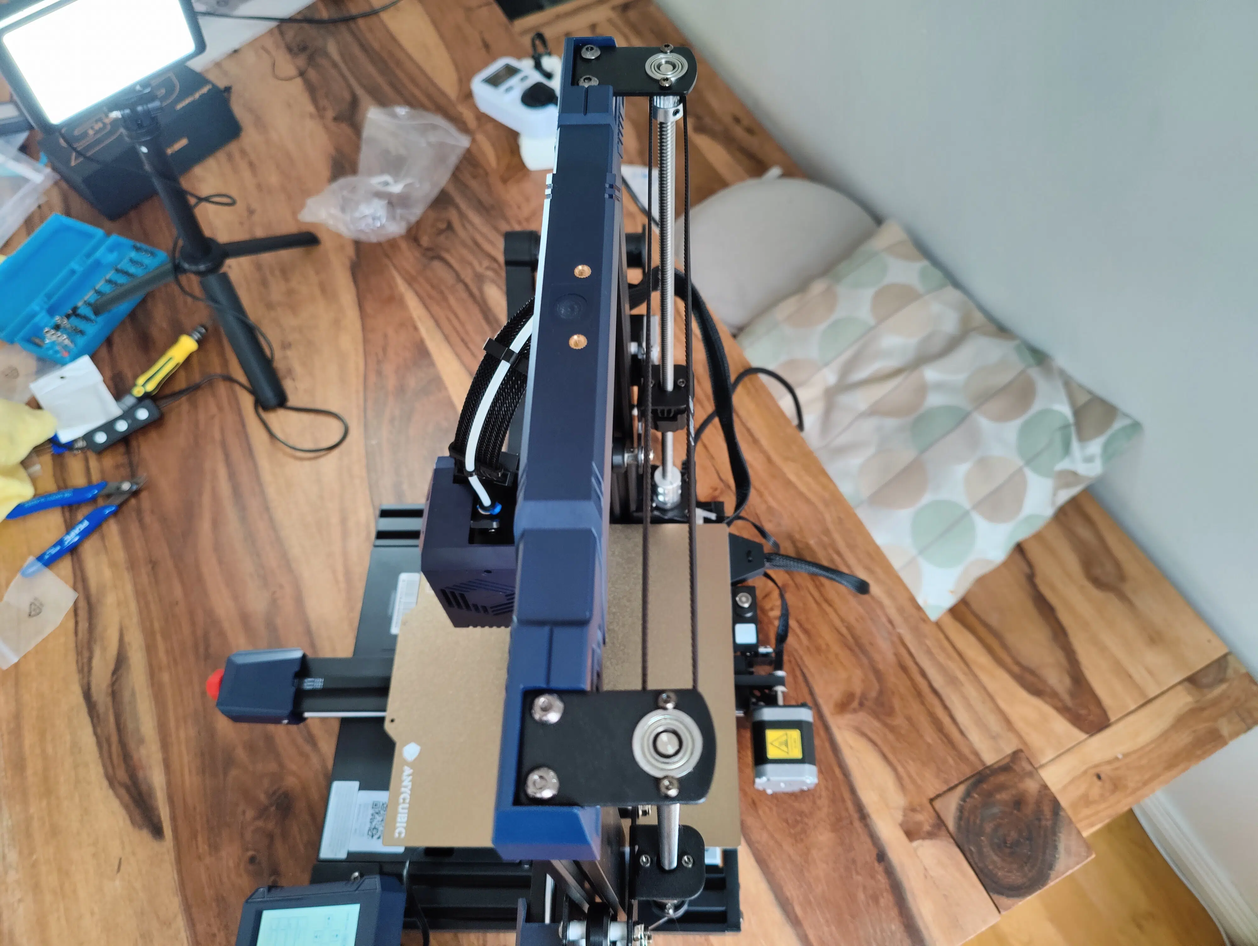 Sentimentale Gefühle in Bezug auf meinen alten Mega-S kommen hoch, als ich die typische Anycubic Startmelodie beim Einschalten des Druckers höre. Leider läuft von Beginn an der Lüfter in der Druckerbasis.