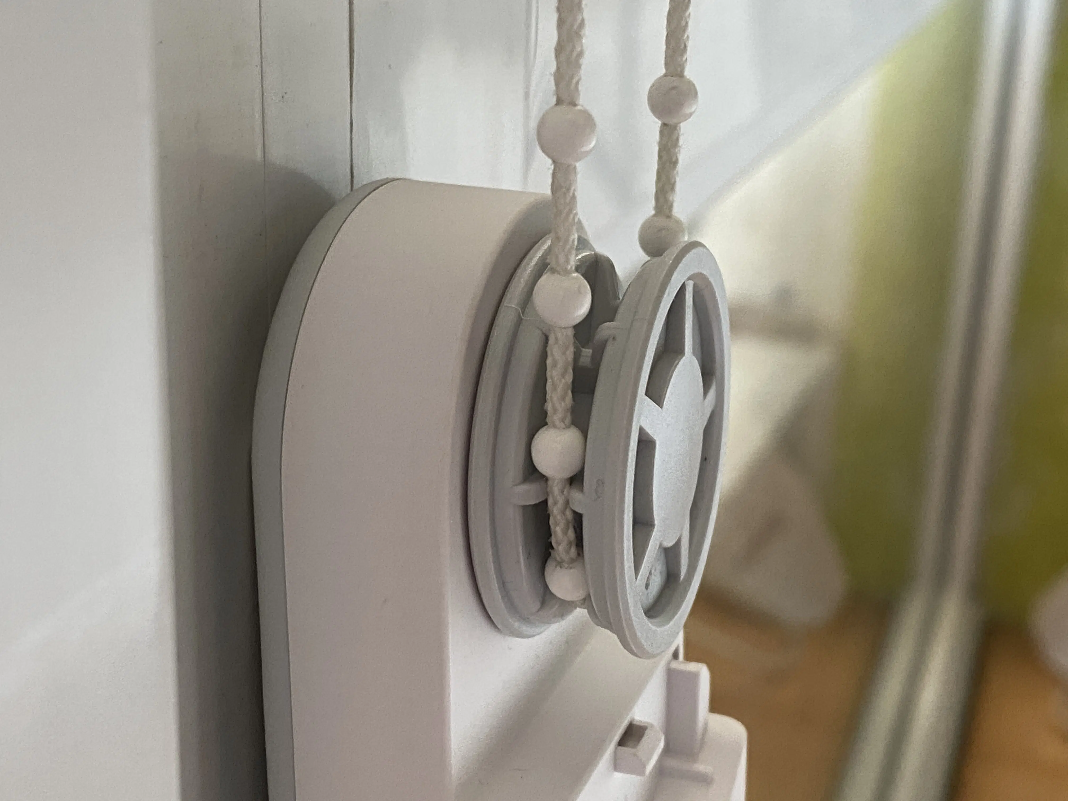 Die vier unterschiedlichen Adapter für die Perlenkabel sind im Lieferumfang, damit eine breite Kompatibilität gewährt wird. Der Hersteller verspricht, dass es mit den meisten Modellen funktioniert, was man an den Perlenkabeln erkennen kann. Unterstützt werden Kunststoff- und Metallperlen mit einer Dicke von 3 bis 6 mm. Je nach Perlenkabel muss man den Adapter aufsetzen, die Klappe oben aufschieben und kann dann leicht die Kette einspannen. Der Hersteller empfiehlt übrigens, dass das Jalousie-Gewicht keine 3 kg überschreitet.