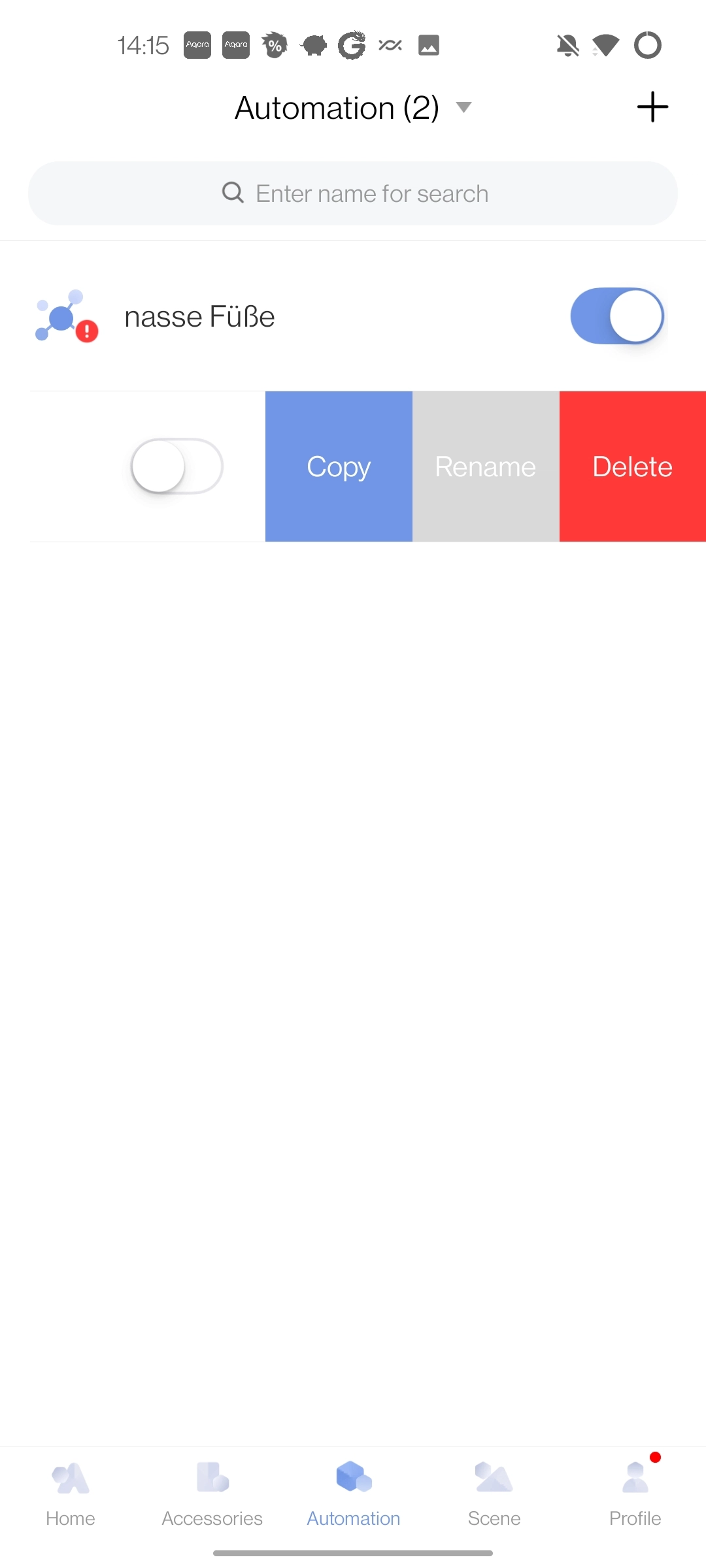 Bei Bedarf lassen sich auch weitere Automationen erstellen, die für andere Wassersensoren in seinen vier Wänden genutzt werden können. Falls man zu viele Automation erstellt hat, können sie in der Auswahl mit einem Swipe nach rechts entfernt werden. Dort lassen sie sich zusätzlich noch umbenennen oder kopieren, wodurch man etwas Zeit einspart.