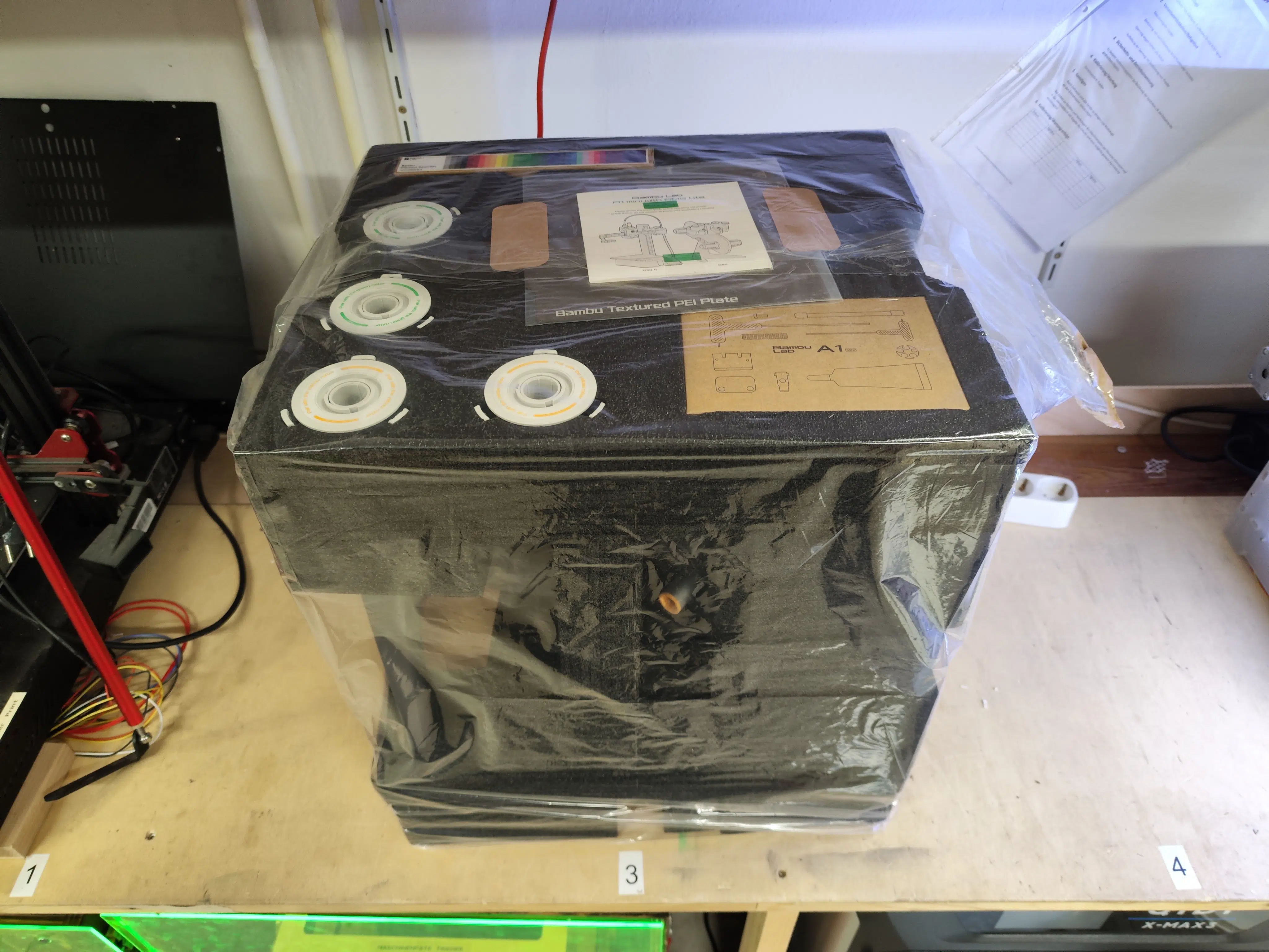 Ein großes Lob geht gleich zu Beginn dieses Praxistests in Sachen Packaging an Bambu Lab raus. Wieder einmal gibt es einen Sack zum Herausziehen, in dem sich der A1 Mini mit AMS Lite befindet. Etwas weniger Schaumstoff hätte es hier allerdings aber auch wohl getan. Alles ist (wie immer) vorbildlich beschriftet. Alles ist hochwertig bis ins letzte Detail verarbeitet. 3 Dinge fallen mir im Vergleich zu vorherigen Unboxing-Erfahrungen auf: