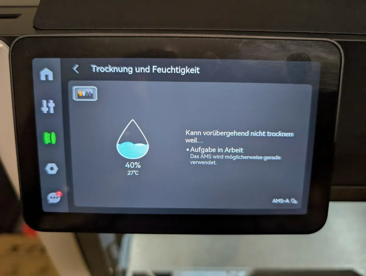 Wenn wir schon beim Stichwort „Wärme“ sind: Genau die hätten wir uns in puncto aktiver Filamenttrocknung mittels AMS 2 Pro auch während des Druckes gewünscht. Das ist leider nicht möglich.