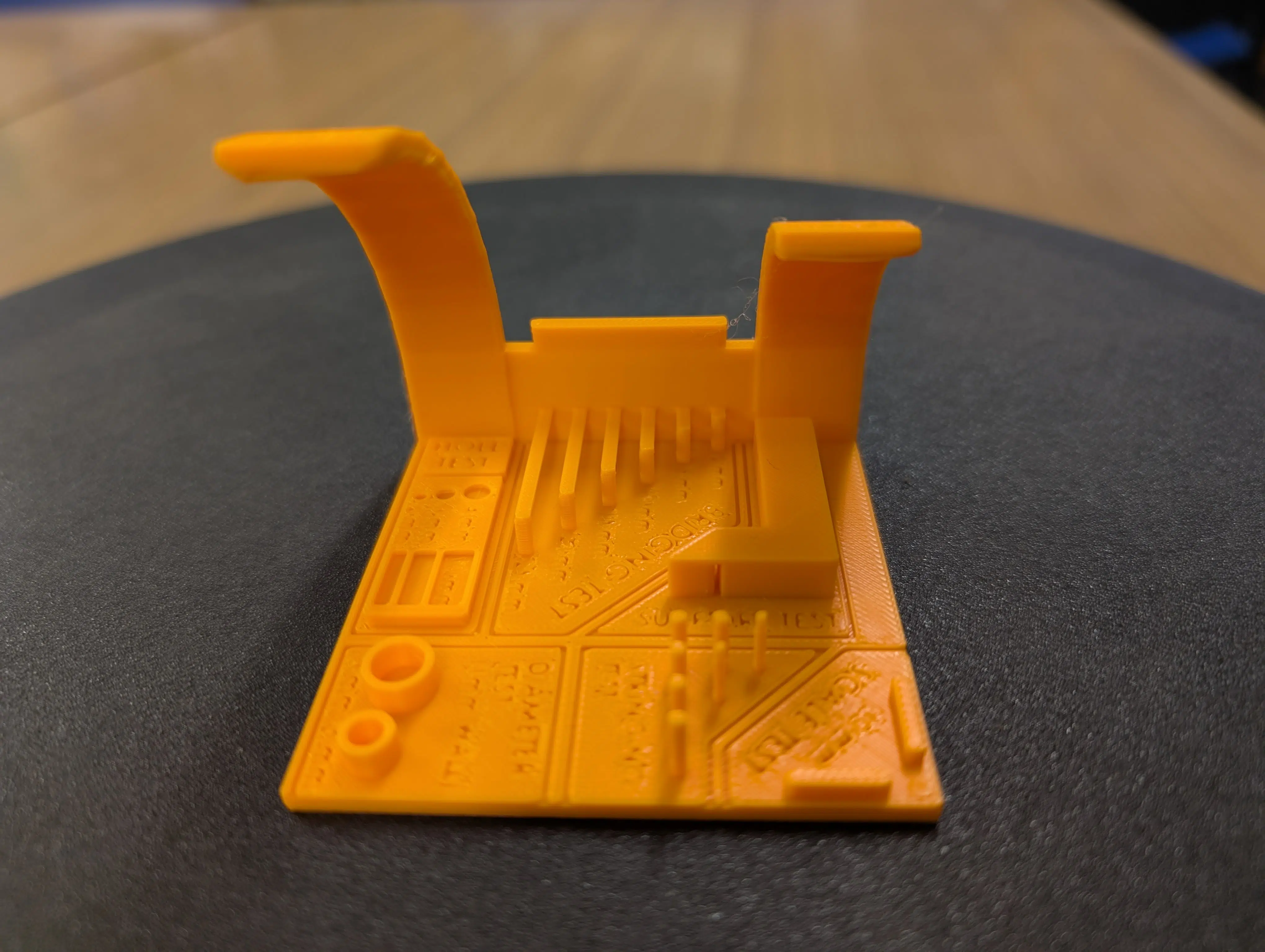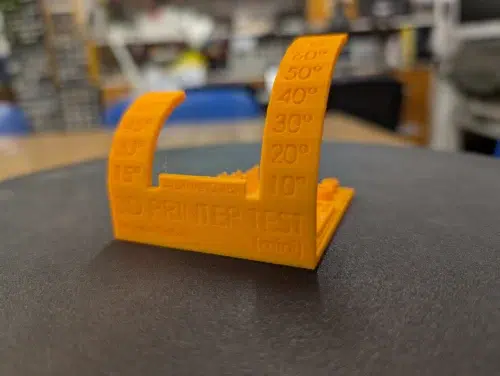 Auch der klassische All-in-One-Test kam nach 1h 22min wie „geleckt“ heraus: Überhänge, Bridging und kleine Details sind absolut top. Erst bei 75° Überhang wird es leicht unsauber, aber selbst dann hängen keine Filamntartefakte herunter.