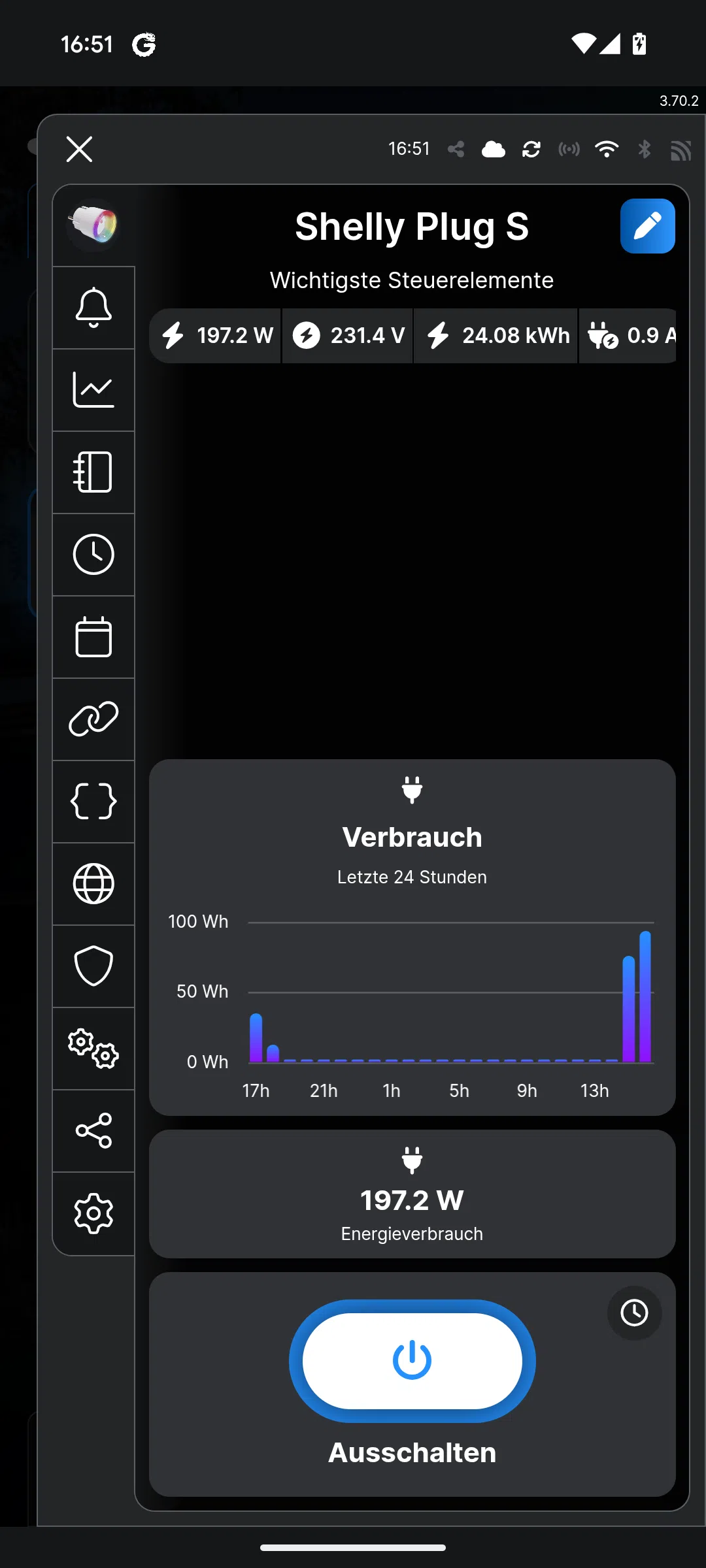 Der Stromverbrauch liegt während des Druckes bei ca. 191 W, was primär dem großen Heizbett geschuldet zu sein scheint. Zur Einordnung: Der H2S liegt damit rund 30 Watt über der durchschnittlichen Leistungsaufnahme eines typischen Ender-3-Klons.