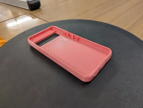 Nach etwas weniger als 2h ist ein weiteres Phone Case gedruckt. Es sieht wirklich sehr gut aus, wobei sich der H2S eine unschöne Z-Naht an der unteren Stirnseite des Modells erlaubt.