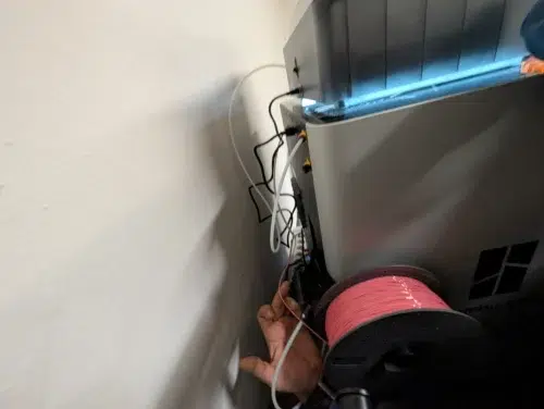Beim anschließenden TPU-Druck mit Bambu Lab TPU 90A muss man den Extra-TPU-Eingang hinten (den wir vorsorglich mit einem Stück PTFE versehen haben) nutzen. Das ist wirklich fummelig. Diese Lösung widerspricht dem sonst so guten einfachen Usability-Konzept von Bambu Lab, funktioniert aber: Man zieht den PTFE-Schlauch am Druckkopf heraus und führt vorsichtig das TPU manuell ein.