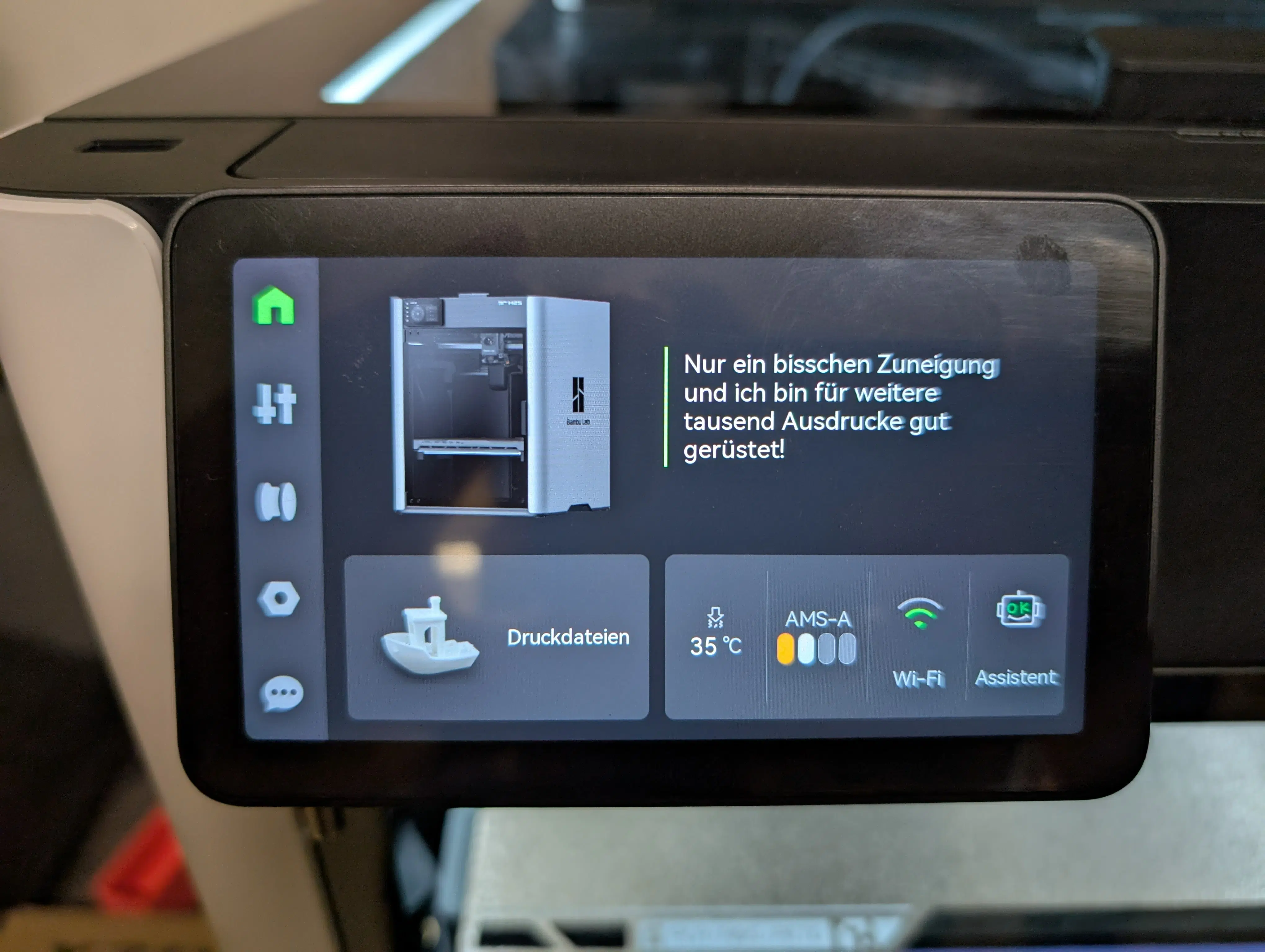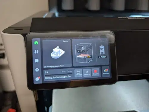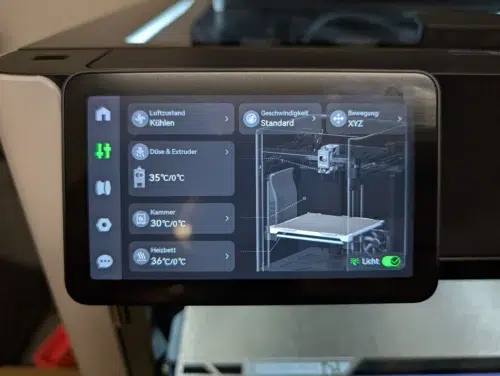 Ein echtes Highlight ist die neue UI des Touchscreens. Bambu Lab verwendet insgesamt eine leicht lockerere Sprache und präsentiert ein extrem intuitives, schlichtes und übersichtliches Menü. Das ist ein riesiger Schritt nach vorne und wird sicher bald von der Konkurrenz nachgeahmt werden.