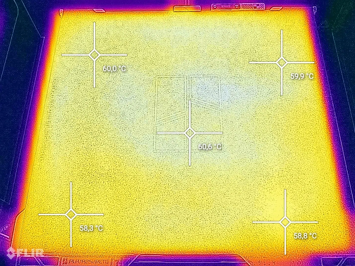 Bei der Wärmeverteilung glänzt der H2S, denn diese ist sehr homogen. Nach 15 Minuten bei eingestellten 60°C maßen wir eine maximale Abweichung von nur 1,7°C – ein sehr guter Wert für diese Größe.