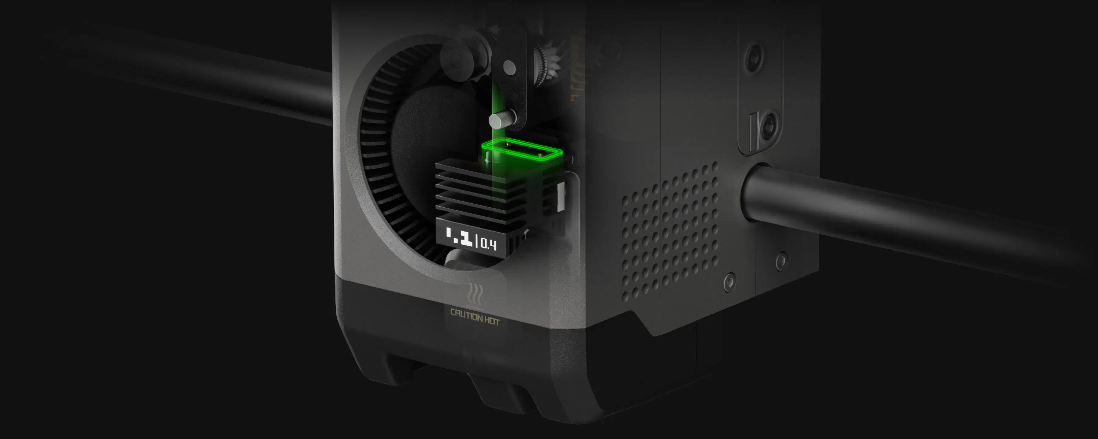 Unter der Haube steckt jetzt der PMSM Servomotor im Extruder, der 70% mehr Kraft liefern soll. Gepaart mit dem neuen Wirbelstromsensor (Eddy Current Sensor), der den Materialfluss automatisch kalibriert, verspricht der P2S eine noch präzisere und gleichmäßigere Druckqualität.