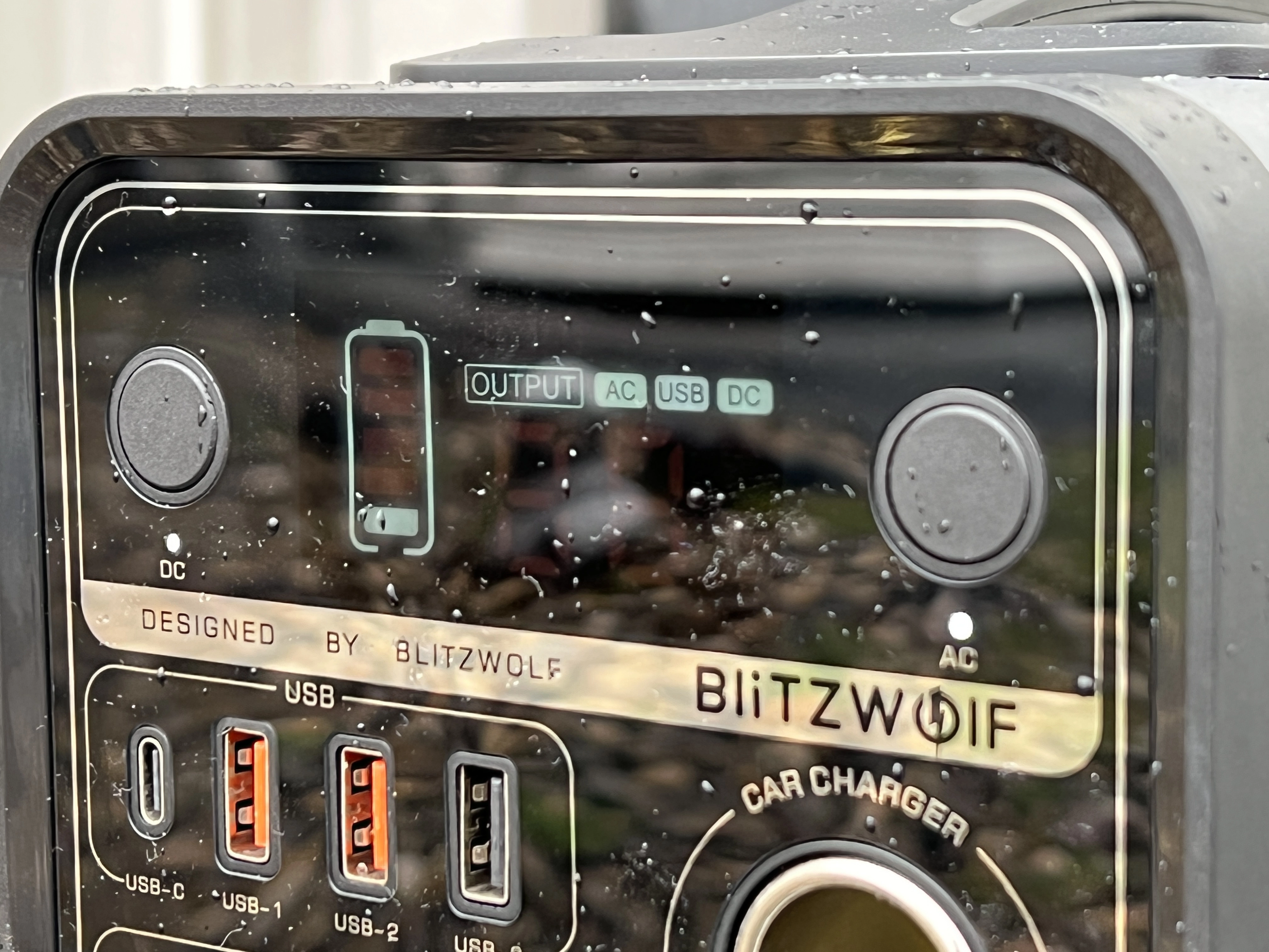 Eine Power Station ist kein Vergleich zu einer Powerbank, allein aufgrund der großen Kapazität ergibt sich ein ganz anderer Formfaktor. Grundsätzlich gehört die BlitzWolf BW-PG2 aber noch eher zu den kleineren Modellen, wenn man bedenkt, dass die Bluetti AC300 über 20 Kg wiegt. Mit Abmessungen von 24 x 13,9 x 15,4 cm und einem Gewicht von 3,8 Kg ist sie etwas größer, schwerer, aber flacher als die NOVOO Power Station. Auch wenn das bei einer Power Station kein Faktor sein sollte, finde ich sie optisch etwas ansprechender als das Modell von NOVOO, da sie insgesamt cleaner ist.