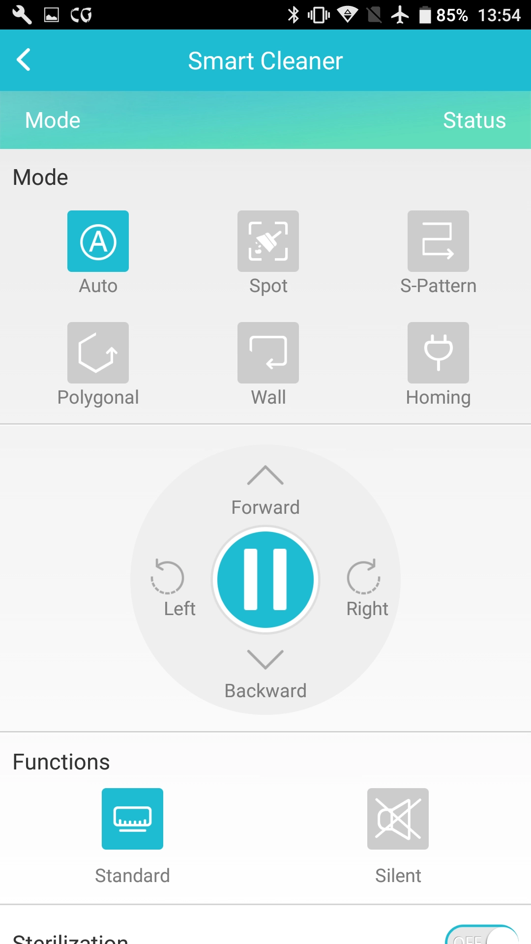 Der Robosauger überzeugt in der App-Steuerung (auf englisch) nicht immer, was die Lenkung über die Pfeiltasten betrifft, sehr wohl aber wenn es an die wählbaren Modi geht. Im „Auto-Modus“ vollrichtet der BW-XRC600 seine Arbeit wie gewohnt automatisch. Bei „Spot“ dreht er sich im Kreis um die eigene Achse, was insbesondere bei größeren Haufen von Vorteil ist. Betätigt man „S-Pattern“, fährt der kleine Sauger Schlangenlinien, bei „Polygonal“ dreht er seine Runde in Form eines Polygons, eines Sechsecks. Besonders ausgefallen: Befindet er sich in der Nähe von Wänden, säubert er über „Wall“ auch in den hintersten Ecken. Und das ohne irgendwo anzustoßen.