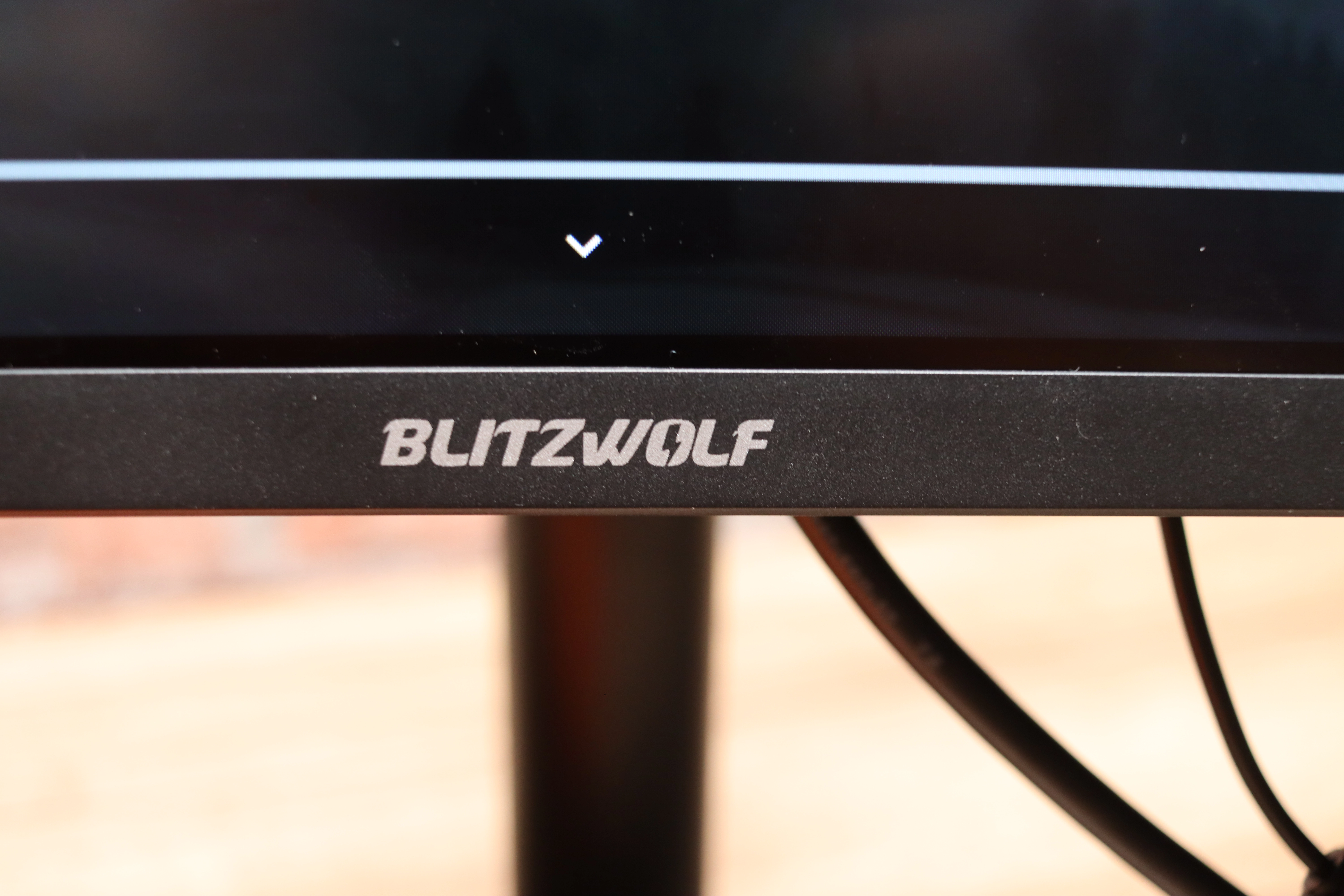 Beim BlitzWolf GM3 handelt es sich um einen 34 Zoll großen Curved Monitor mit einer Krümmung von 1500R. Als Material beim Gehäuse verwendet man durchgängig harten schwarzen Kunststoff. Auf der Front finden wir neben zwei BlitzWolf Logos links und in der Mitte noch eine Legende für die Bedienung auf der rechten Seite.