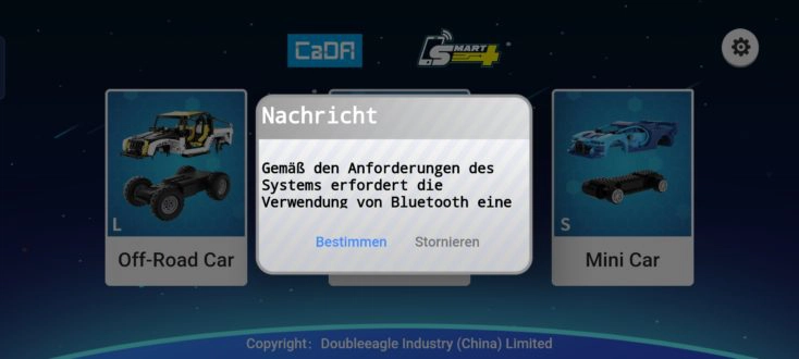 Das Auto kann auch ferngesteuert werden und tritt so die Nachfolge der bisherigen Mini-Autos von CaDA an. Entweder nutzt man die beiliegende Fernsteuerung (benötigt zusätzlich noch 2 AAA-Batterien) oder die CaDA-App auf dem Smartphone.