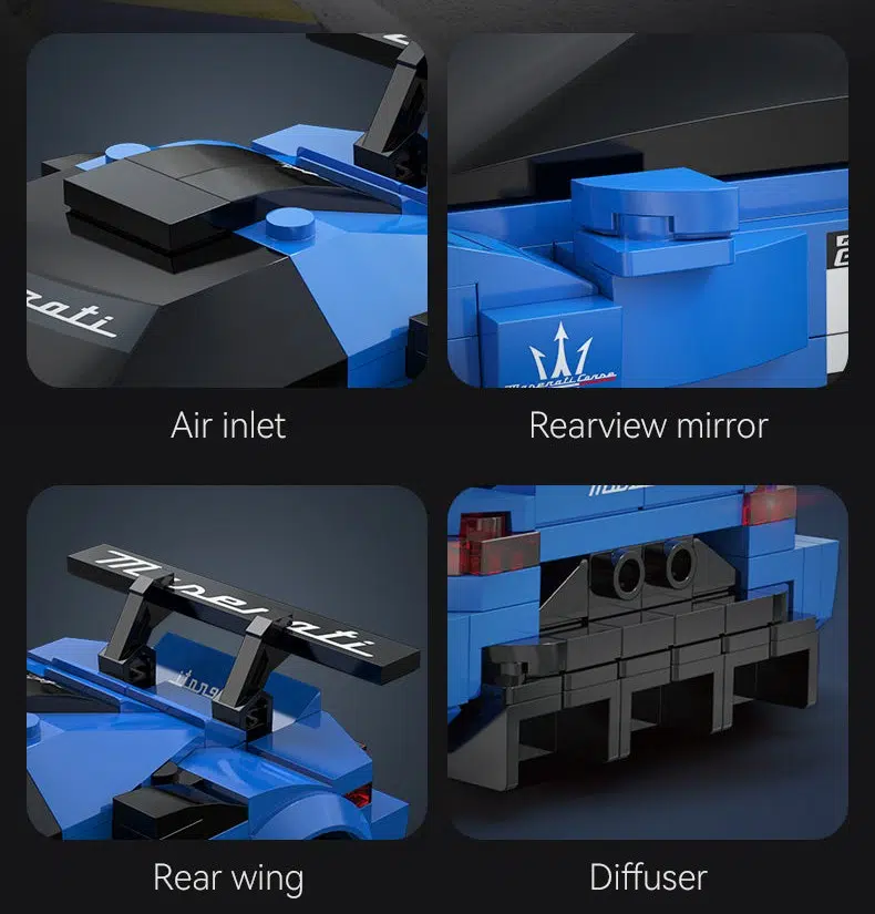 Ein weiteres Modell in der langen Reihe der Mini-Sportwagen von CaDA. Diesmal handelt es sich um einen Maserati GT2 im Maßstab 1:24, der dem großen Vorbild auch wirklich ähnlich sieht – so weit das bei einem doch eher kleinen und detailarmen Modell eben möglich ist. Für das Set hat CaDA auch eine offizielle Lizenz von Maserati, kann hier also das original Logo des Autoherstellers verwenden.