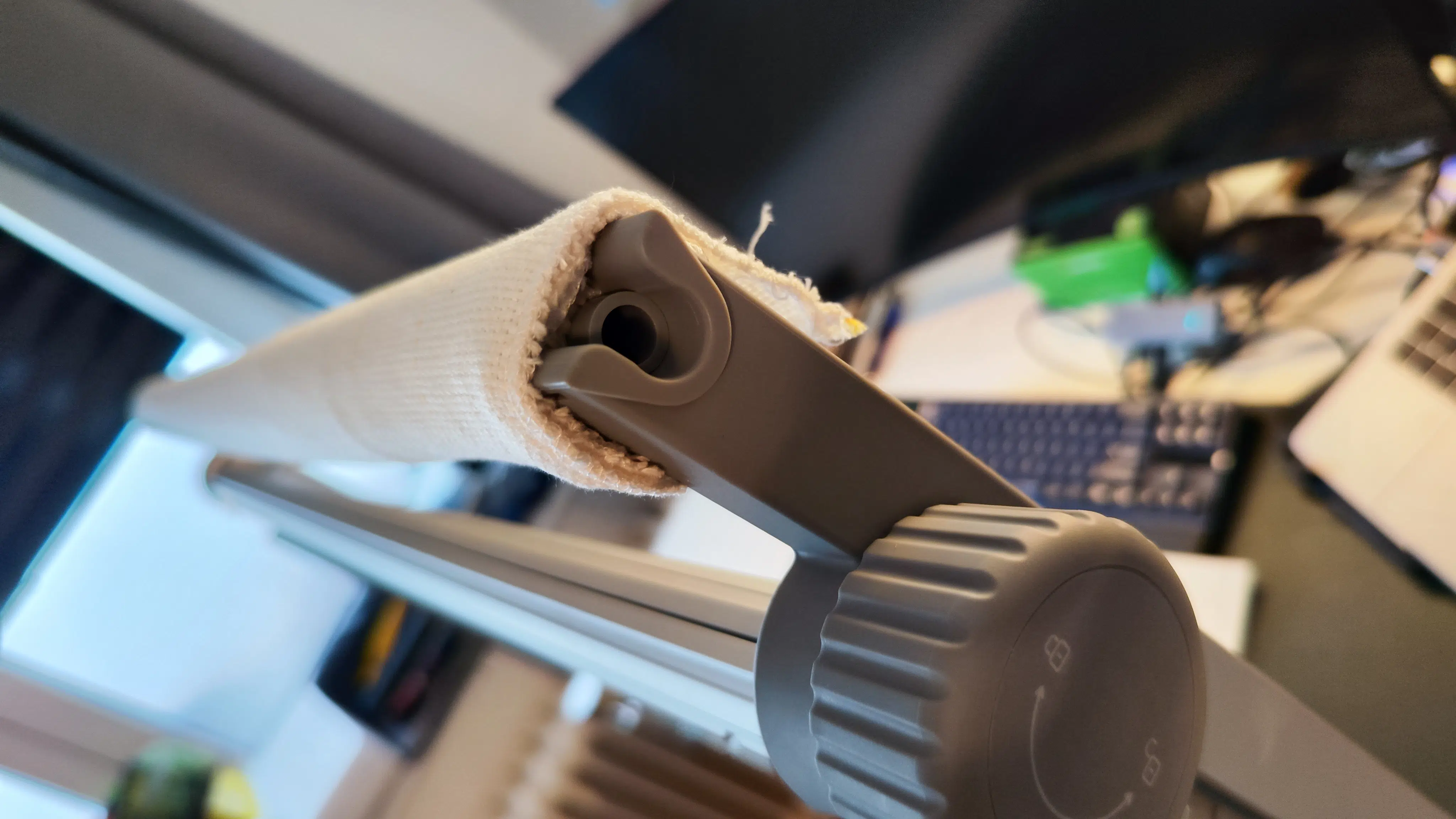 Der Rahmen an sich ist nicht weiter höhenverstellbar, er sitzt direkt auf Schreibtischhöhe in meinem Fall. Das ist zu niedrig, um bequem im Stehen zu arbeiten, aber zu hoch, um entspannt im Sitzen zu tuften. Wer keine höhenverstellbare oder perfekt platzierte Platte besitzt, wird früher oder später Rückenschmerzen bekommen.