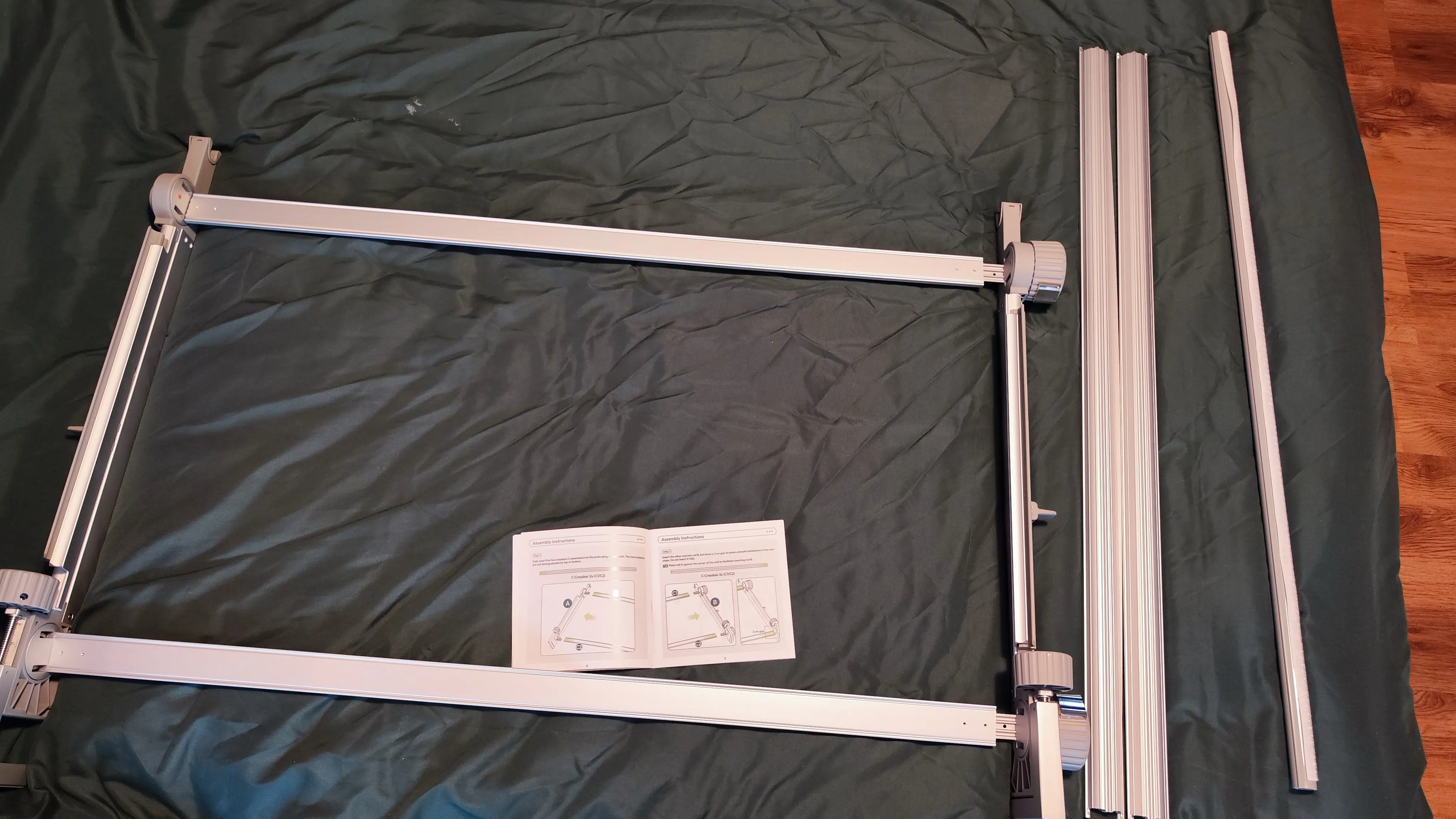 Der Aufbau des Aluminiumrahmens gestaltet sich relativ einfach, wenn man das Stecksystem und die sehr knappe Anleitung einmal verstanden hat. Die leichten Bauteile lassen sich gut handhaben und am Tisch befestigen. (Anmerkung: Bei unserem Testmodell fehlten anfangs Schrauben, die aber schnell nachgeliefert wurden).