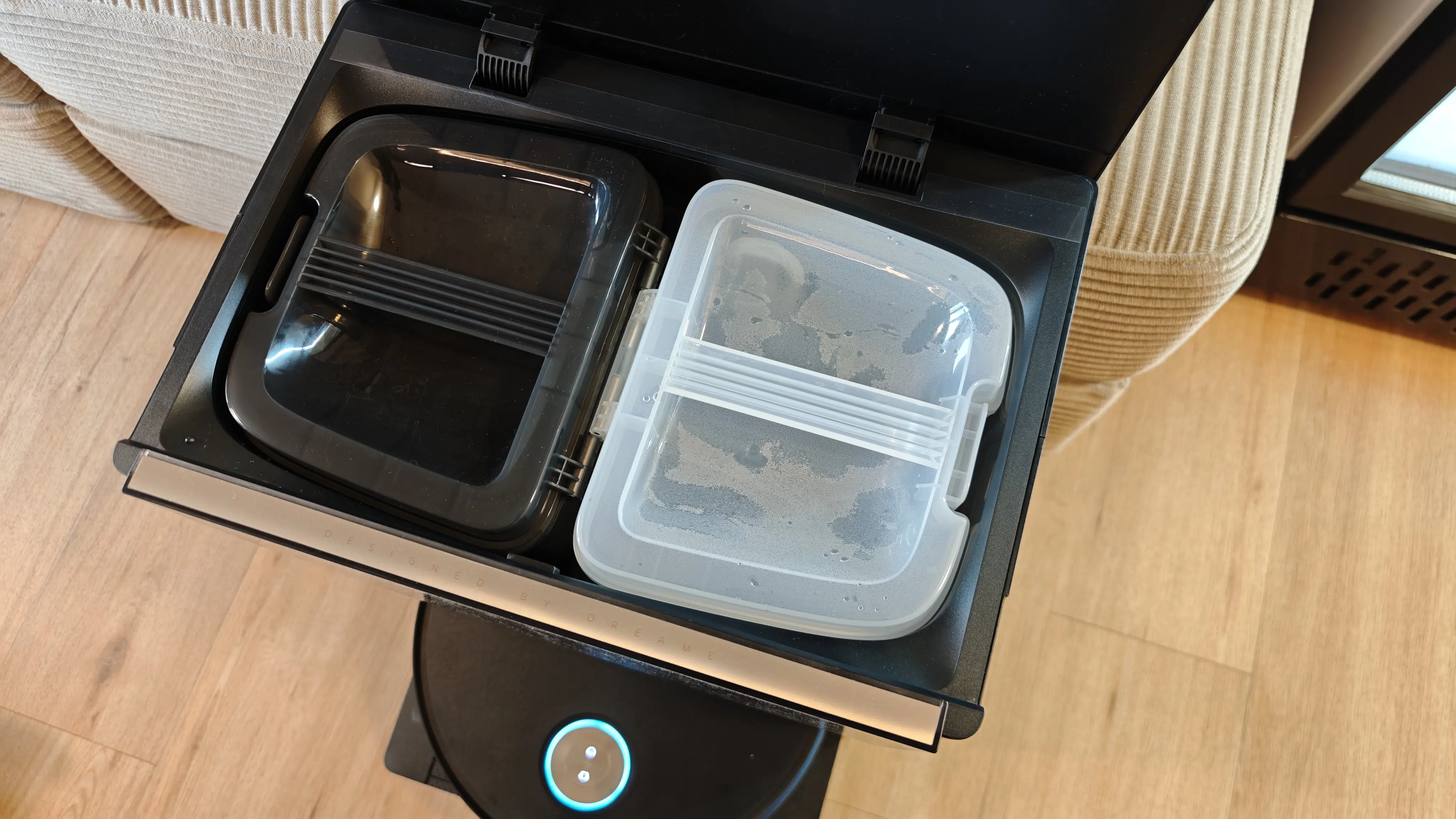Dadurch beugt man vor, dass sich beim Trocknen doch noch Bakterien und Co. bilden und sich eventuelle Feuchtigkeit im Staubbeutel festsetzt. Besagter Staubbeutel ist für die Absaugstation, den ihr unregelmäßig entleeren müsst. Je nach Reinigungshäufigkeit und Anfallen von Schmutz reicht so ein Beutel 1-3 Monate. Clever ist das duale Reinigungsmittelfach: Es dosiert automatisch zwei verschiedene Mittel, eines für den Boden und eines speziell gegen Tiergerüche. Wer möchte, kann die Station mit einem separat erhältlichen Wasseranschluss-Kit auch fest an die Hausleitung anschließen.