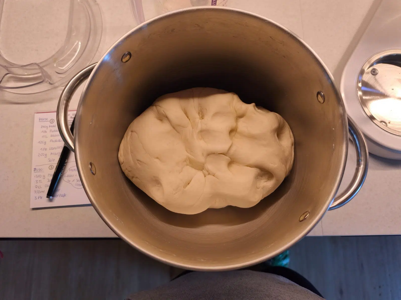 Nichtsdestotrotz kam die Maschine beim Härtetest von Pizzateig mit 1,3 Kilogramm Mehl (Maximal sollen 1,5 kg möglich sein) an ihre Grenzen. Trotzdem bleibt der Teig in der Schüssel und nichts quillt über.