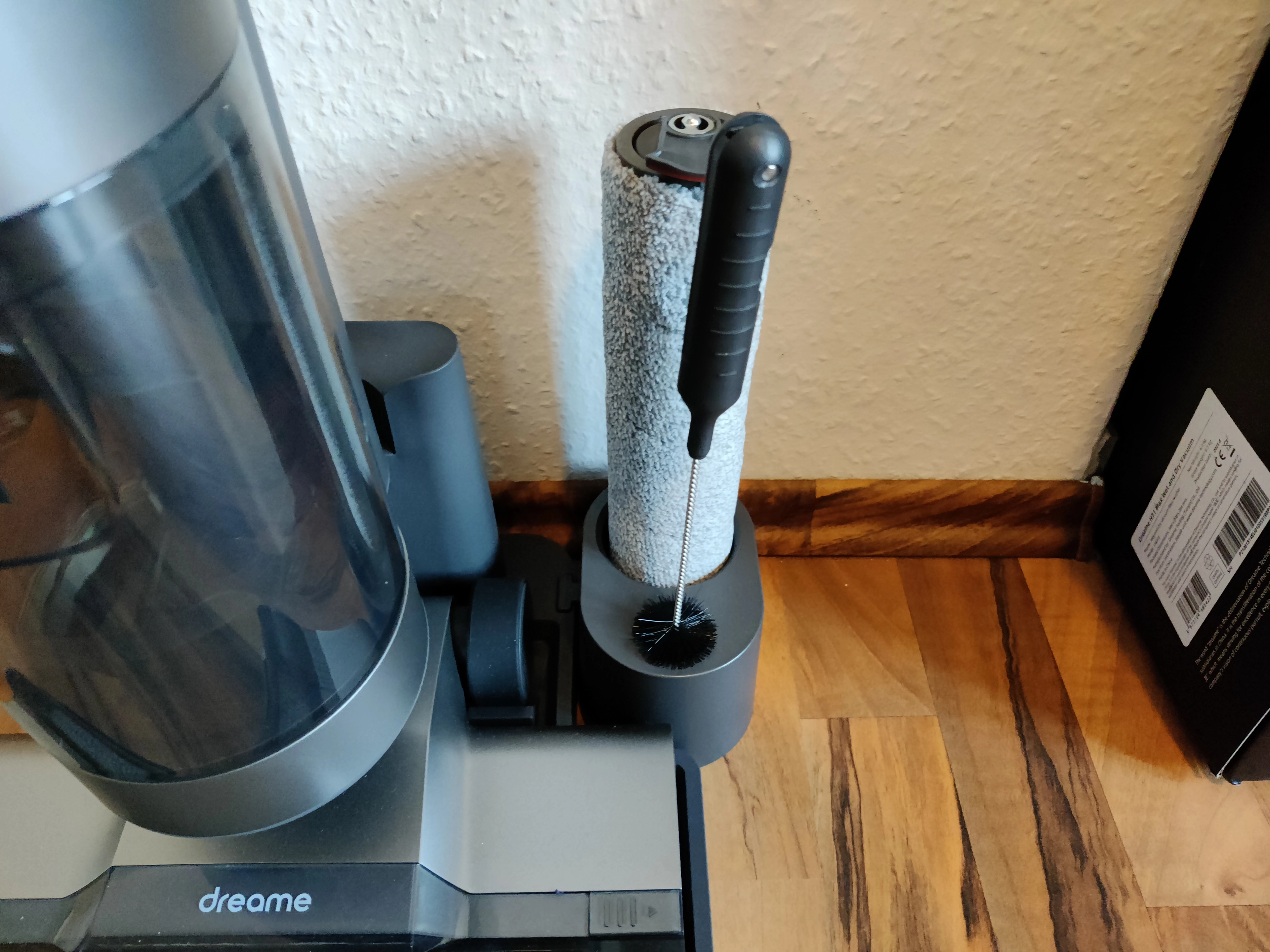 Eine weitere Schwäche ist die Reinigung von Ecken. Aufgrund der geschlossenen Bürste an beiden Seiten können Ecken nur richtig gereinigt werden, wenn man sie von zwei Seiten angeht. Je nach Fußleiste oder Wand lässt der Dreame auch einen kleinen Streifen aus.