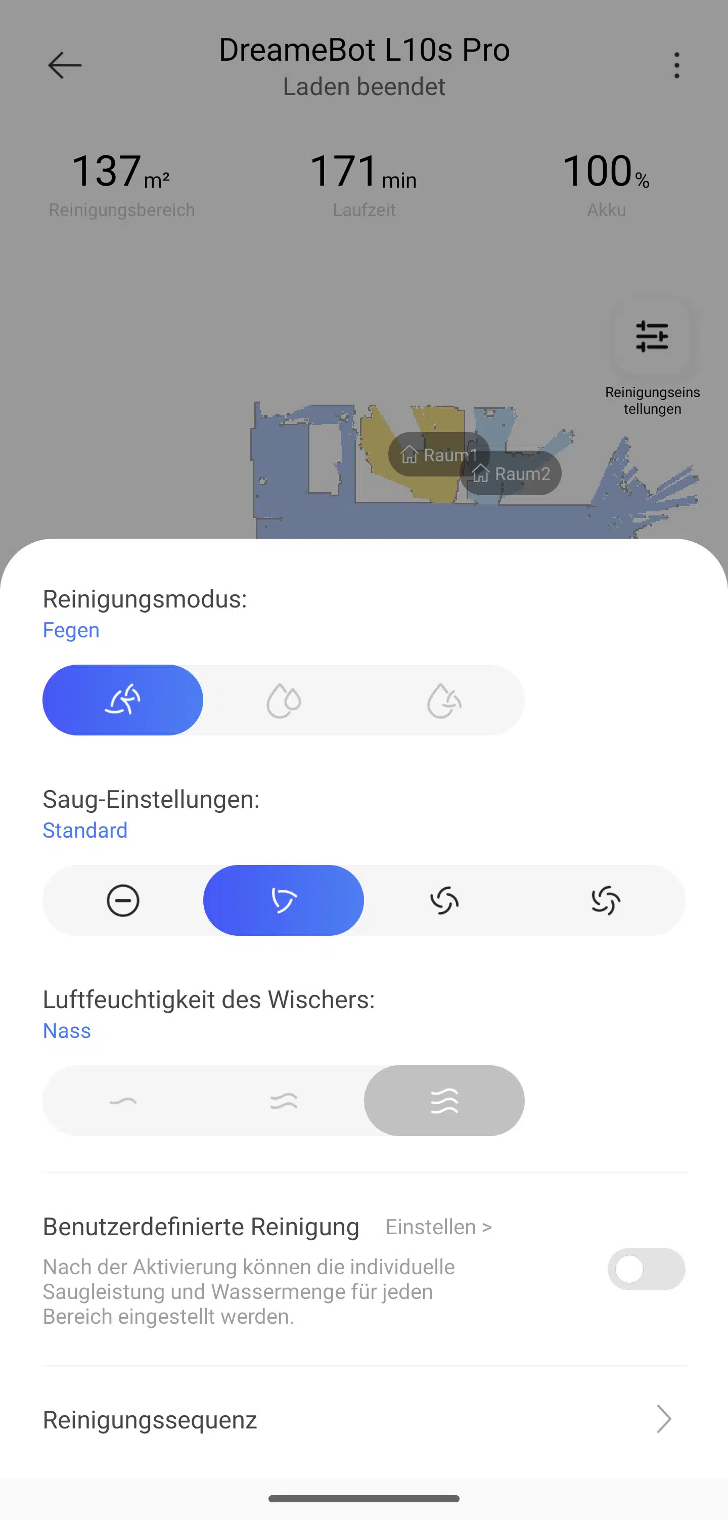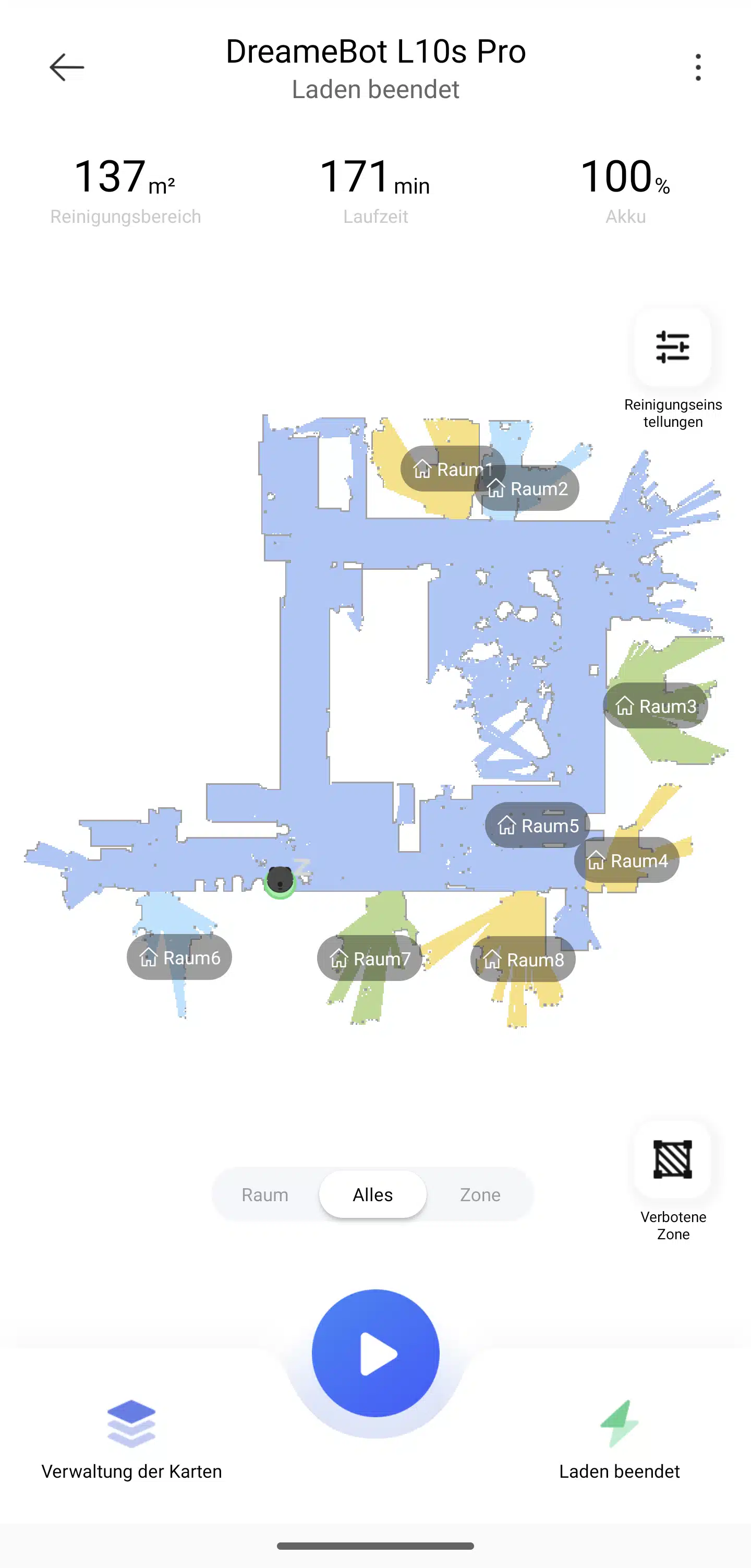 Dann konnte der Spaß beginnen, die Kartierung habe ich direkt im Saugmodus vorgenommen. Das hat dann relativ lange gedauert, hat aber einwandfrei funktioniert.