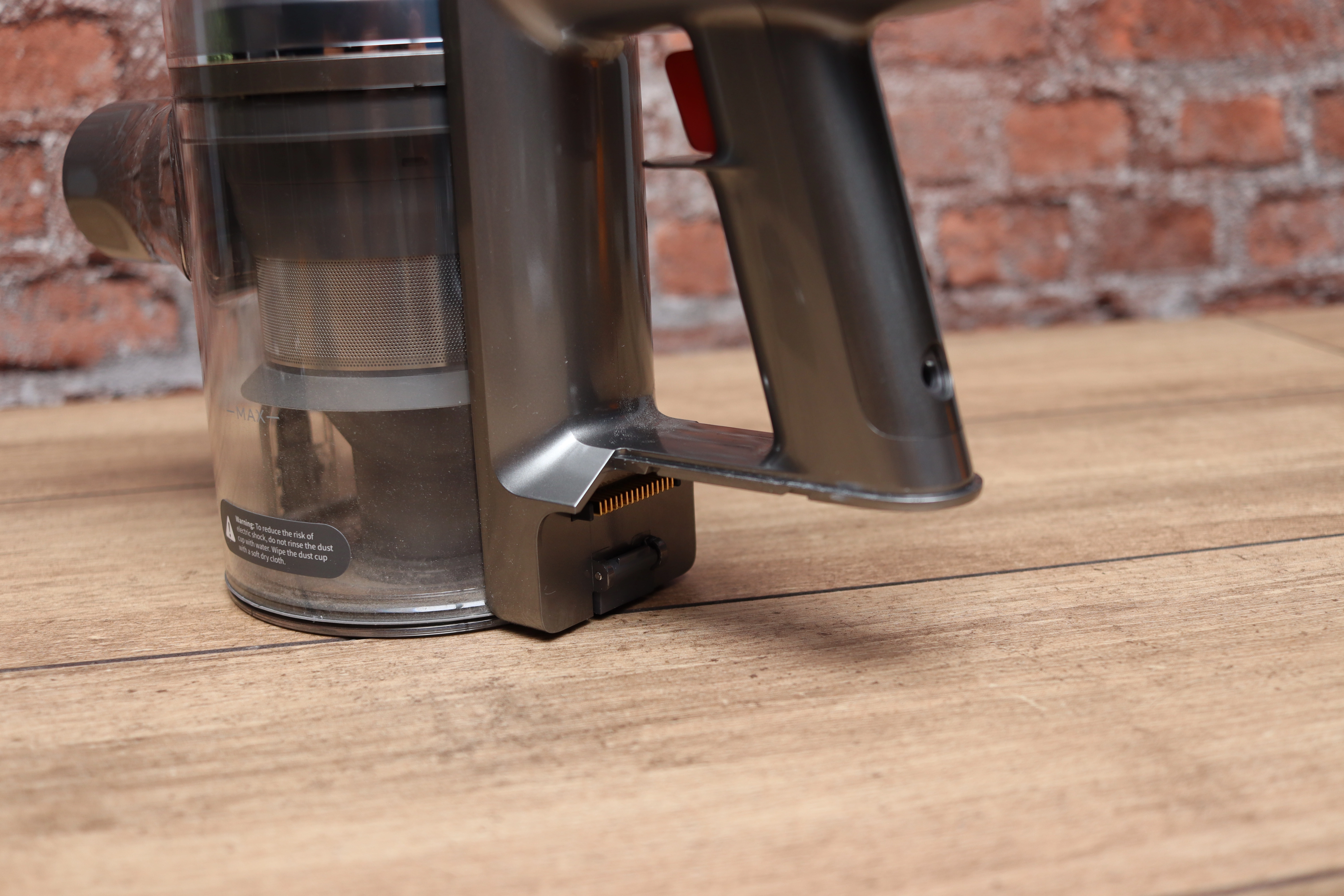 Ebenfalls wieder mit dabei ist der wechselbare Akku, den man nach der Entriegelung durch einen Knopf, einfach vom Akkusauger abziehen kann. In der Theorie kann man so einen zweiten Akku nutzen, falls die eigene Wohnung zu groß ist für die Laufzeit oder aber der Akku in Zukunft seine Kapazität verloren hat.