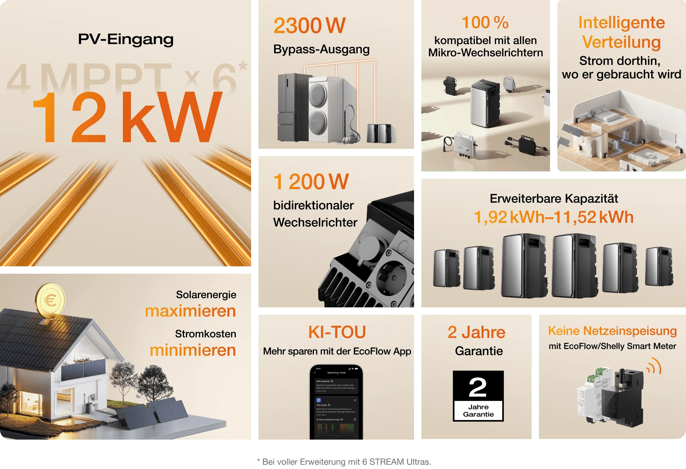 | Off-Grid-Ausgang | 1.200 W (Boost auf 2.300 W möglich) |