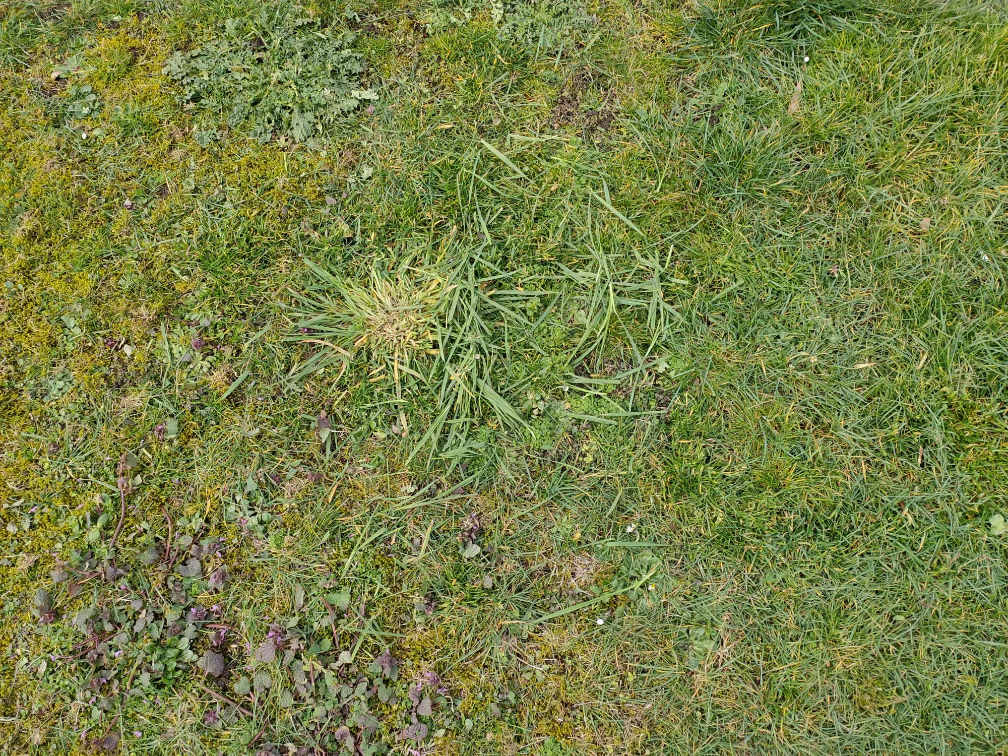 Hindernisse sind hier in Form von vereinzelten Obstbäumen und besagtem Schwimmteich vorhanden. Die Grashöhe ist unterschiedlich. Durchschnittlich gehe ich hier von ca. 8cm Graslänge aus. Ausreißer nach oben (ca. 15cm) und nach unten insbesondere durch Moos (ca. 2cm) machen klar, dass es sich hier nicht um eine rein homogene Fläche handelt.