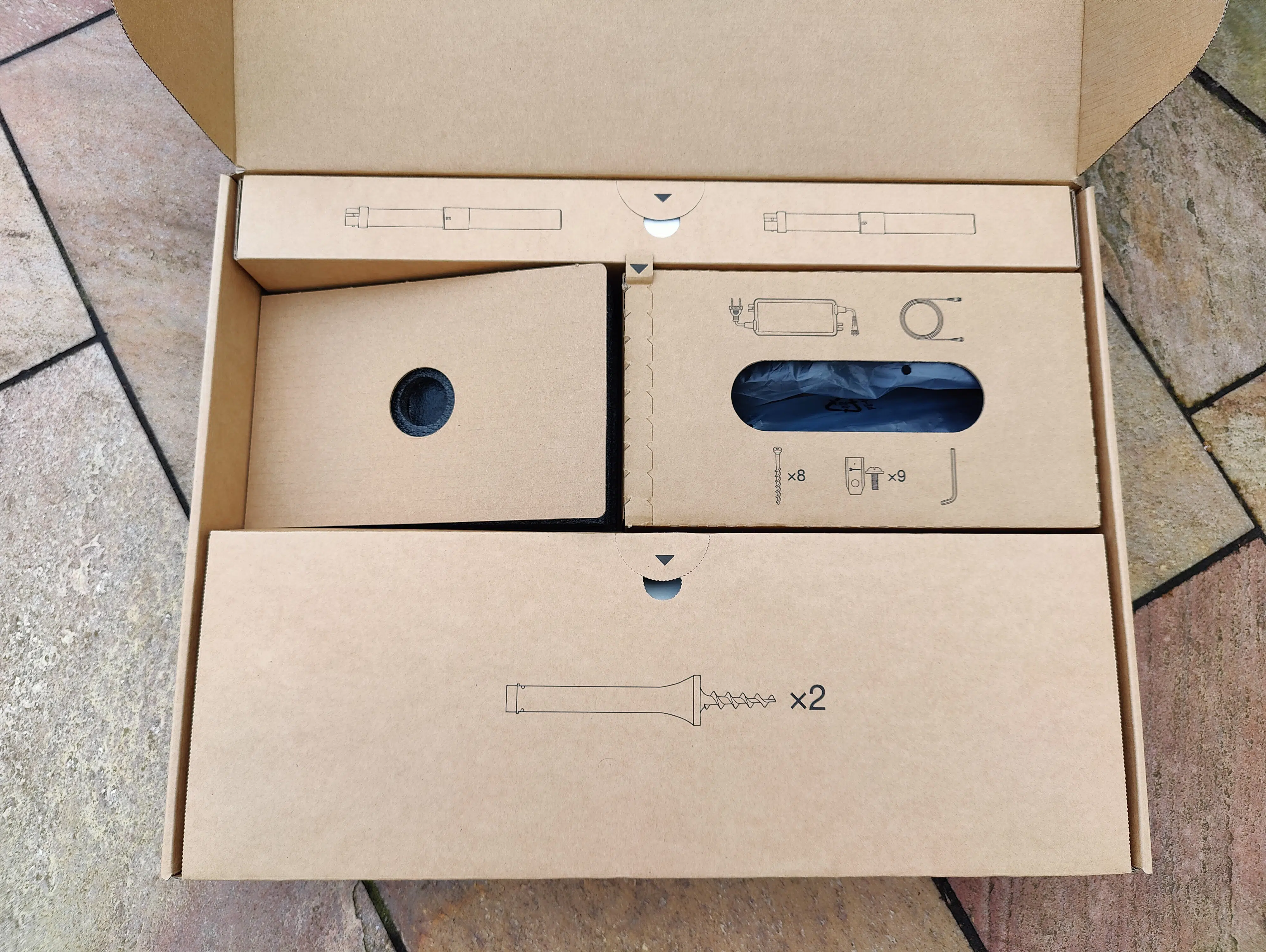 Weil aller guten Dinge drei sind, kommt nach Rücksprache mit Ecovacs schließlich ein drittes Paket mit weiteren 5 Sender-Baken, denn: der U-förmige Garten ist mit ca. 1600m² groß. Hier hätte ich mir einen wie auch immer umgesetzten direkten Hinweis auf die notwendige Anzahl der Baken gewünscht – nicht erst nach Studium der ersten Seiten des Handbuchs zur Installation.
