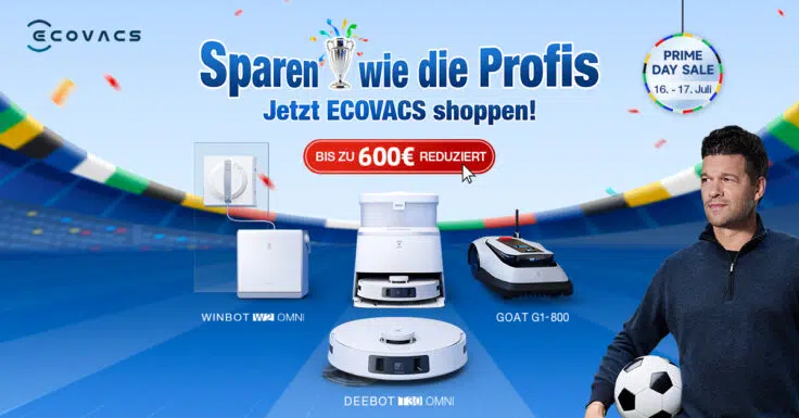 Der Prime Day ist gestartet und ECOVACS hat zahlreiche Angebote am Start. Zur Auswahl stehen verschiedene Saugroboter für jede Preisklasse, der Fensterputzroboter und die Rasenmähroboter des Unternehmens.