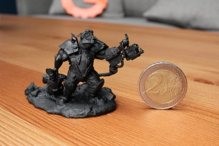 Das beigelegte Zubehör ist leider mäßig. Beim Versuch die Figuren von der Druckplatte zu bekommen, ist mir glatt ein Stück vom Plastikspachtel abgebrochen. Aber: Die Qualität ist der Hammer!