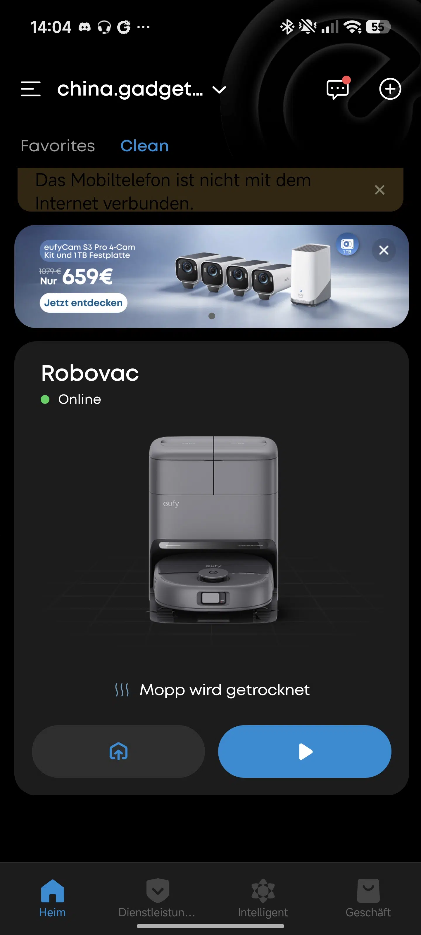 | App-Steuerung | eufy App (schnelle Kartenerstellung, Sperrzonen, Auto-KI-Modus, Zeitpläne, eufy Lab Wasserstandsanzeige) |