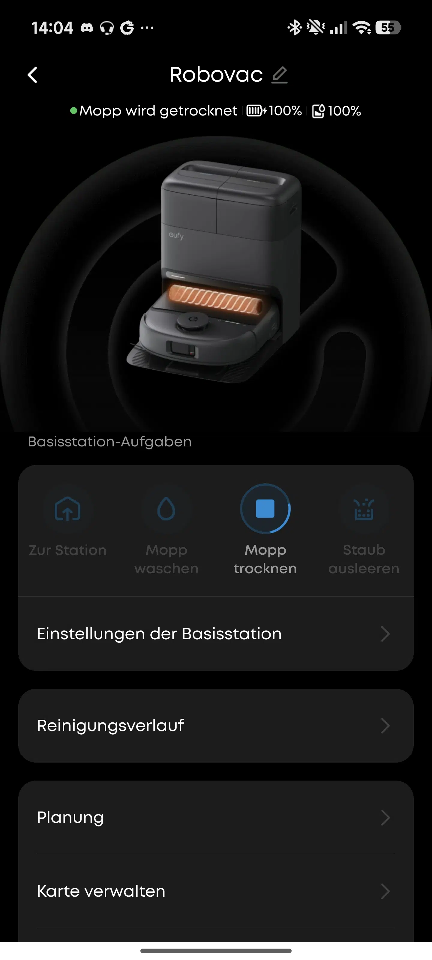 Eure Reinigungsprogramme können aber auch abgespeichert werden und mit Zeitplänen automatisch ausgeführt werden. In den weiteren Einstellungen könnt ihr auch die einzelnen Funktionen der Station starten oder abbrechen. Im eufy Lab Reiter findet sich zudem eine Wasserstandanzeige, bei der ihr den Wasserstand in der App einsehen könnt, solange ihr immer bei der Entnahme des Frischwasserbehälters diesen komplett auffüllt. Ansonsten findet man hier die üblichen Funktionen wie eine Kindersicherung zur Sperrung der Knöpfe am Roboter oder eine Nicht Stören Funktion. Vermissen tun Smart-Home-Enthusiasten aber eine Matter Integration. Als Sprachassistent stehen der Google Assistant und Amazon Alexa zur Verfügung.