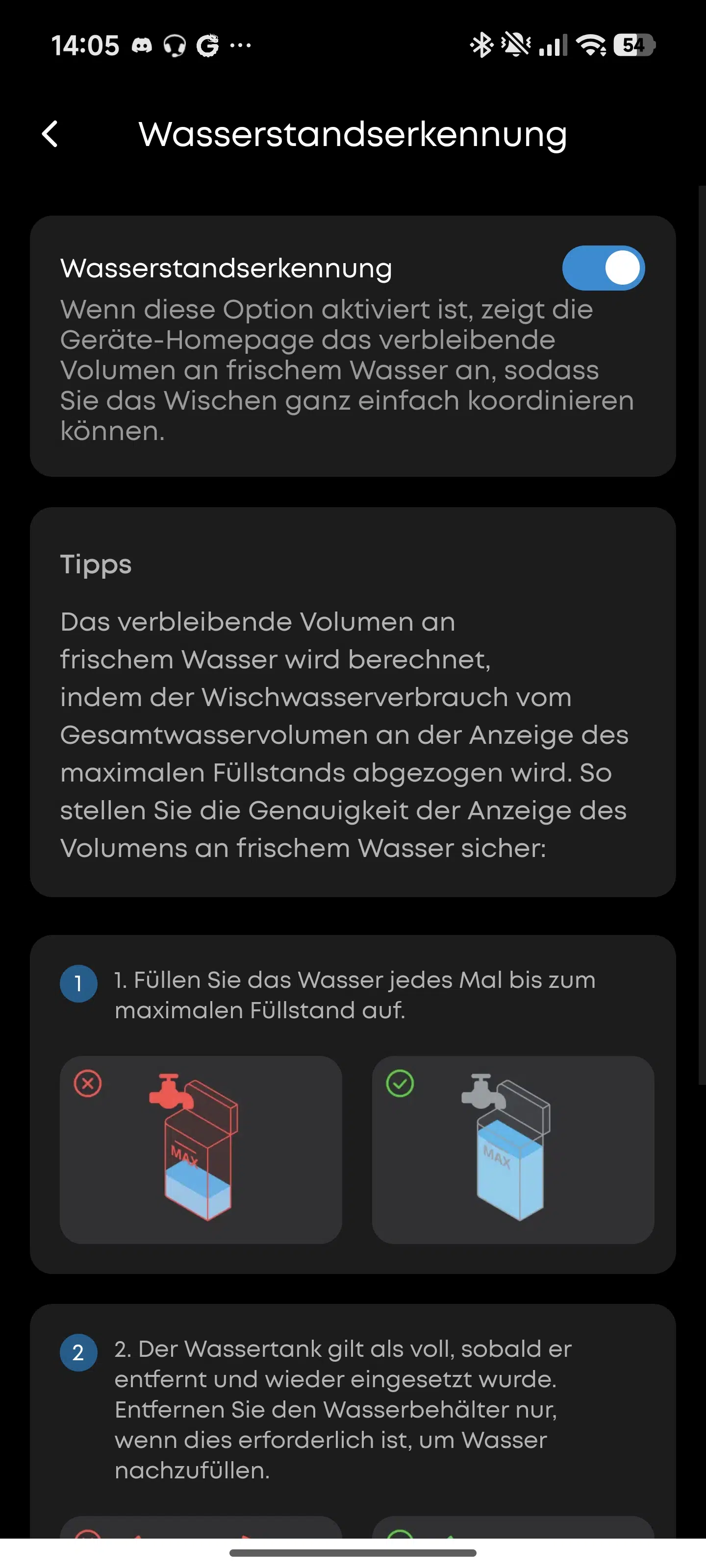 - Gute App-Steuerung inkl. KI-Modus und experimenteller Wasserstandsanzeige