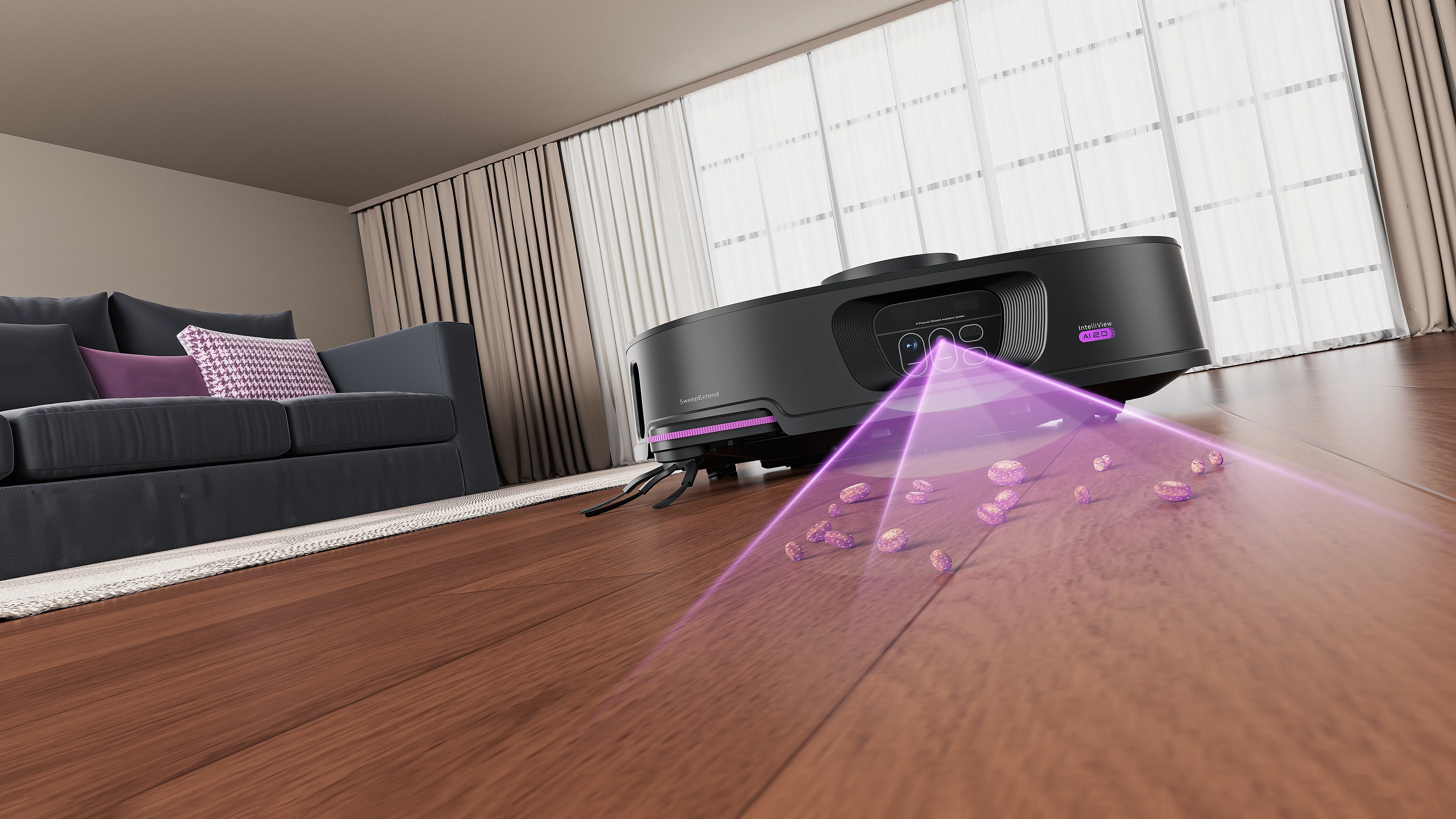 Hier bleiben andere Roboter halt gerne mal hängen. Als Basis der Navigation dient der Laserturm (LiDAR), welcher durch die IntelliView AI 2.0 Objekterkennung mit Infrarot- und Full-HD-Kameras auf der Front ergänzt wird. Damit soll er zuverlässig auch um kleinere Objekten herumnavigieren.