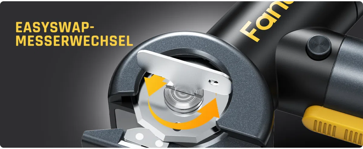 Geladen wird der Akku per USB-C. Eine volle Ladung dauert ca. eine Stunde und soll für bis zu 40 Minuten ununterbrochene Laufzeit reichen. Besonders clever ist die „EasySwap“-Technologie: Dank eines Spindel-Verriegelungsmechanismus lässt sich die Klinge mit einem kleinen mitgelieferten Werkzeug in Sekundenschnelle sicher wechseln. Zwei Klingen sind bereits im Lieferumfang enthalten.