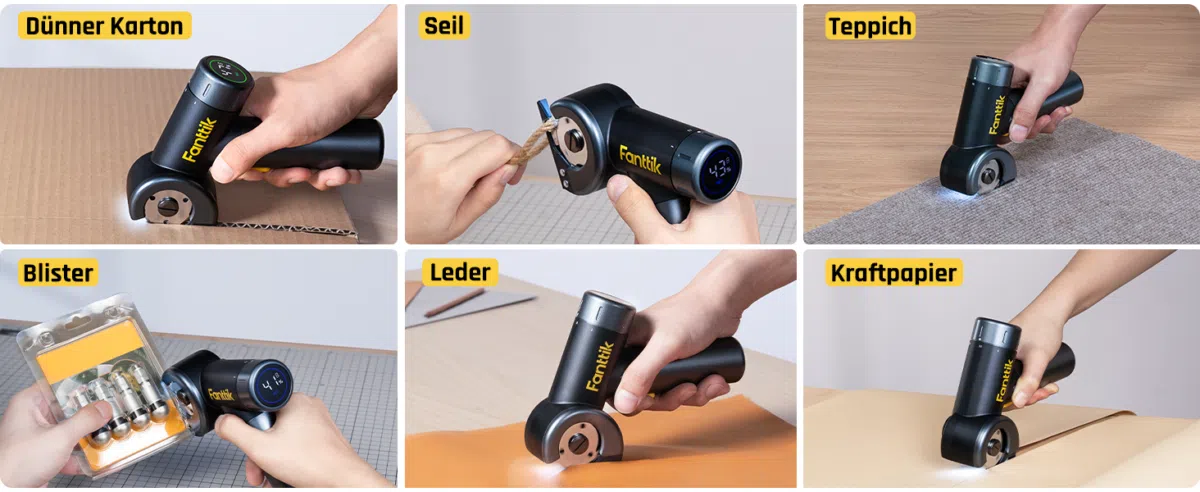 Die Anwendungsfälle sind vielfältig und lösen Alltagsprobleme: Es lassen sich damit z.B. Pappkartons zerkleinern. Statt mit dem Cutter herumzuhantieren, fährt die C8 Nano einfach durch dünnere Kartonagen (Hinweis: Für sehr dicke, mehrwellige Pappe ist sie laut Hersteller nicht geeignet). Auch für Bastel- und Heimwerkerprojekte bietet sich der kleine Kraftprotz an. Egal ob Stoff, Leder, Filz, dünner Teppich oder Vinylboden – die rotierende Klinge soll saubere und schnelle Schnitte ermöglichen. Auf Social Media werden auch „Spezialfälle“ in Sachen C8-Nano-Einsatz geschildet: Auch ungewöhnlichere Materialien wie selbstklebendes Kratzbrett-Material für Katzen lassen sich damit bearbeiten.