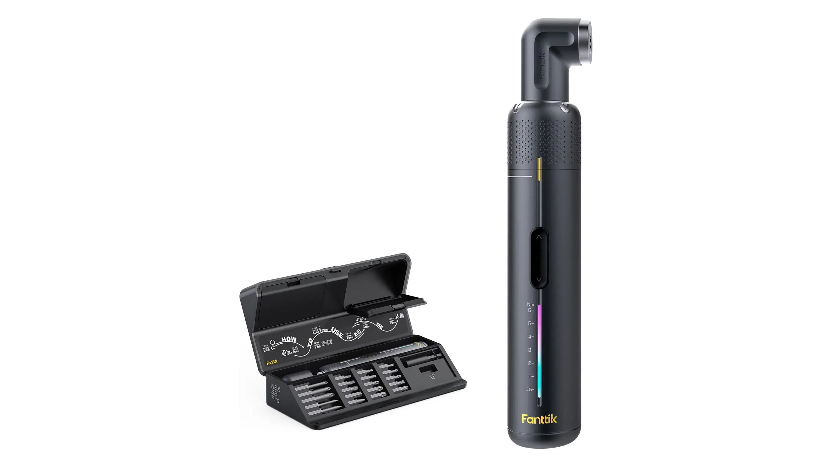 Was uns auf dem Papier besonders gefällt, ist der 90°-Winkeladapter. Wer schonmal versucht hat, in einem engen PC-Gehäuse das Mainboard festzuschrauben oder in einer schmalen Schublade zu arbeiten, weiß dieses Teil zu schätzen. Dass Fanttik hier direkt eine Verlängerungsstange und den Winkelaufsatz beilegt, macht das Set tatsächlich zu einem Allrounder für Maker.
