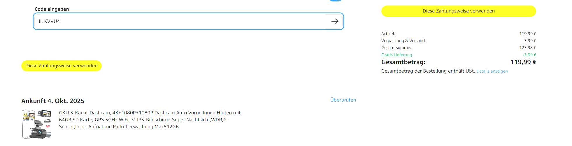 4. "Diese Zahlungsweise verwenden" anklicken