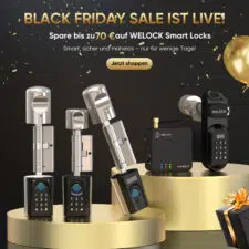 Black-Friday-Angebote gibt es auch beim Smart-Schloss-Hersteller Welock. Hier gibt es Schlösser verschiedener Preiskategorien teils deutlich vergünstigt. Wer also die Türschlösser zu Hause smarter machen will oder zu Weihnachten ein solches Schloss verschenken will, der kann sich die Aktion bei Welock mal genauer anschauen. Vielleicht ist ja das passende Schloss dabei.