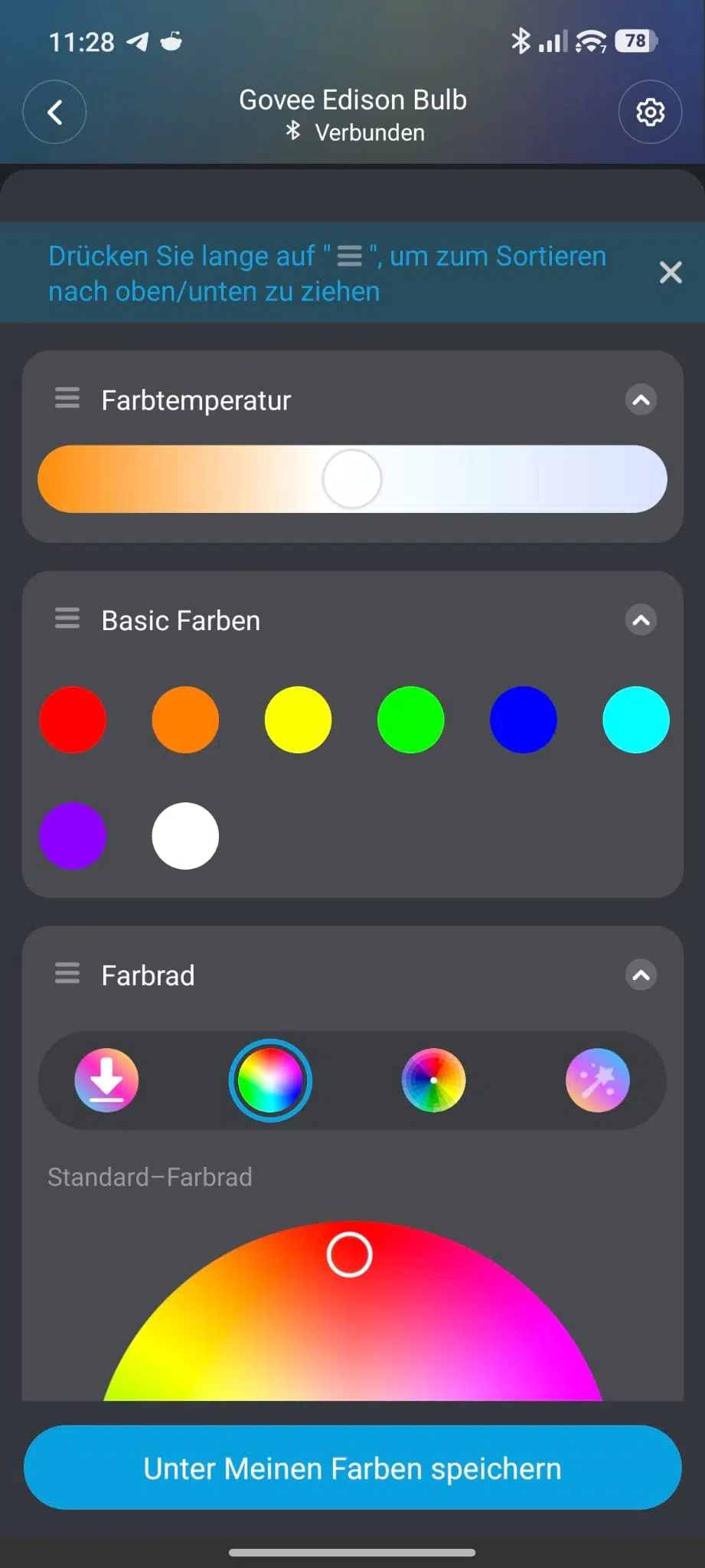 Im Inneren sitzen die typischen Filamente, die hier jedoch aus hochmodernen LEDs bestehen. Im Gegensatz zu klassischen Vintage-Birnen, die meist nur einen warmen Weißton beherrschen, bietet Govee hier das volle RGBWW-Spektrum. Das bedeutet, dass ihr die Beleuchtung stufenlos von gemütlichem Warmweiß bis hin zu kühlem Tageslicht zwischen 2700K und 6500K anpassen oder sogar in jeder erdenklichen Farbe erstrahlen lassen könnt.