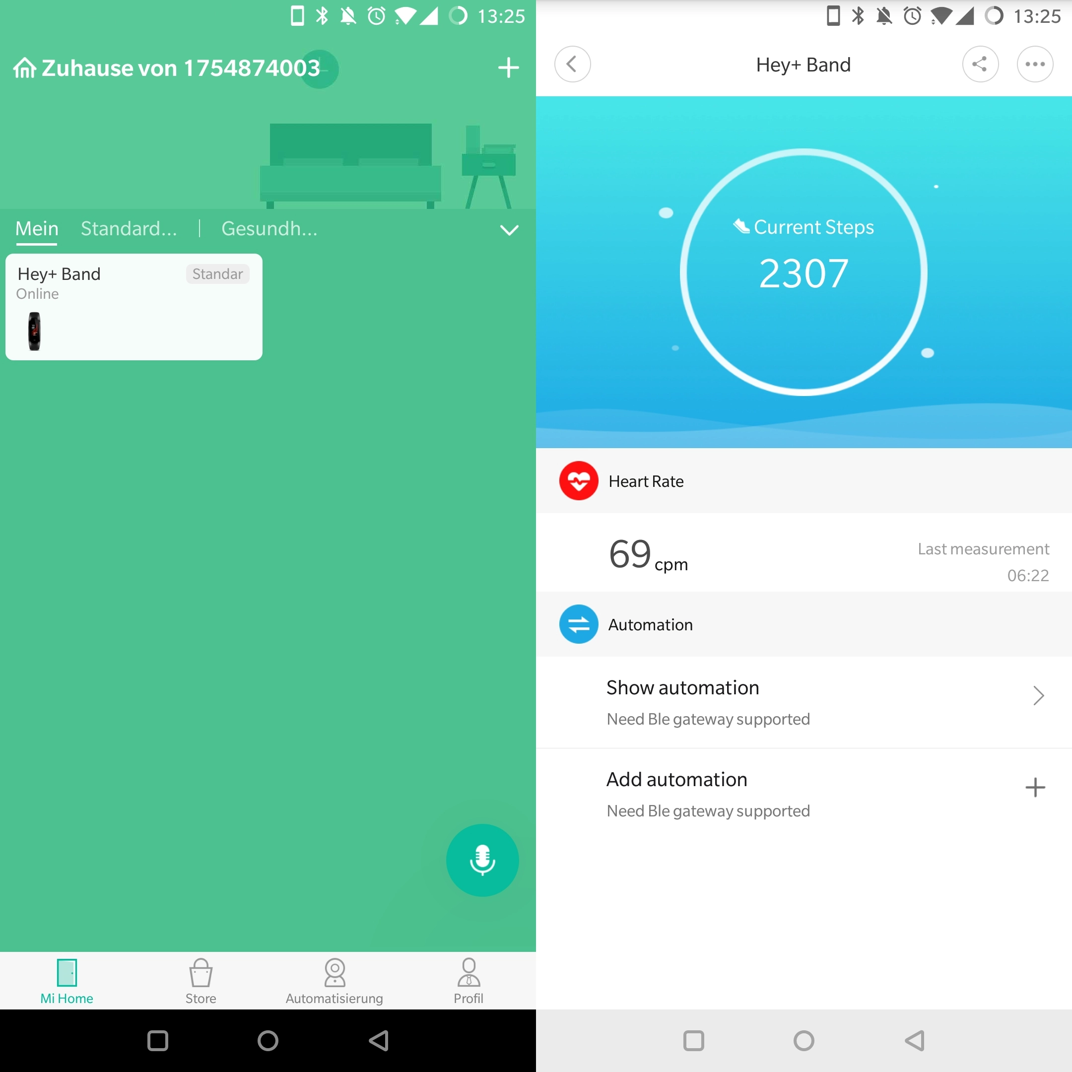 Man kann das Hey+ auch mit der Mi Home App verbinden (Server auf Festland-China stellen & BLE Gateway benötigt) und dann Automatisierungen einstellen, welche vom Band gestartet werden können. Diese Funktion konnten wir leider noch nicht testen, das Hey+ Band wird aber zumindest schon mal von der Mi Home App gefunden.