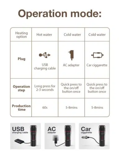 Zuerst einmal entfernt man unten den Kaffeebecher, schraubt den Kaffeeauslass ab und setzt dort einen Kapseladapter mit Kapsel nach Wahl ein. Kaffeeauslass mitsamt befülltem Kaffeeadapter werden nun wieder eingeschraubt (Pro-Tipp: nur handfest drehen, ansonsten hilft im schlimmsten Fall nur noch die Zange!). Ganz oben dreht man den Deckel auf und füllt bis zur „Max-Markierung“ entweder kaltes oder heißes Wasser. Nun lässt sich wahlweise der AC-Adapter oder aber der 12V-Adapter anschließen. Direkt danach blinkt der Knopf kurz blau auf, ehe er bereit ist (kein Leuchten). Drückt man ihn, blinkt er langsam rot und die Aufheizphase beginnt, bis ihr nach 5 bis 8 Minuten je nach ursprünglicher Wassertemperatur euren Espresso in der Tasse habt. Aber Achtung: Verwendet ihr das mitgelieferte USB-Kabel, dann entfällt die Aufheizfunktion und ihr benötigt heißes Wasser. Zudem müsst ihr dann 2 bis 3 Sekunden auf den Knopf drücken.
