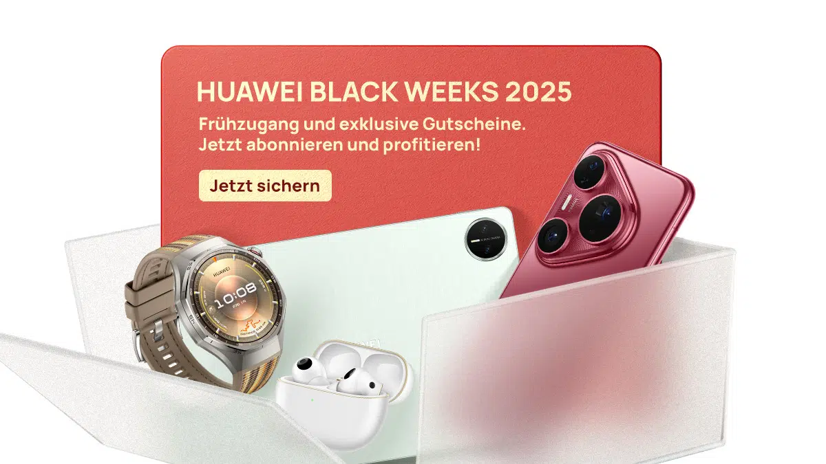 Huawei startet am 13.11.2025 schon ihre Black Week Angebote und die Besonderheit ist: Das sind die finalen Preise! Kein Warten bis zum Black Friday, ob es vielleicht noch besser wird. Die aktuellen Deals gelten bis zum Black Friday! Wer sich vorab schon in den Newsletter eingetragen hat, sollte die Gutscheine schon erhalten haben und somit schon Zugriff auf die Black Week-Preise haben. Aber kein Problem, wir verraten euch die Newsletter Gutscheine für die Huawei Watch 5, Watch GT 5 und die MatePad Tablets. Für alle anderen Gadgets könnt ihr unseren exklusiven Gutschein AHWBF2025 benutzen.