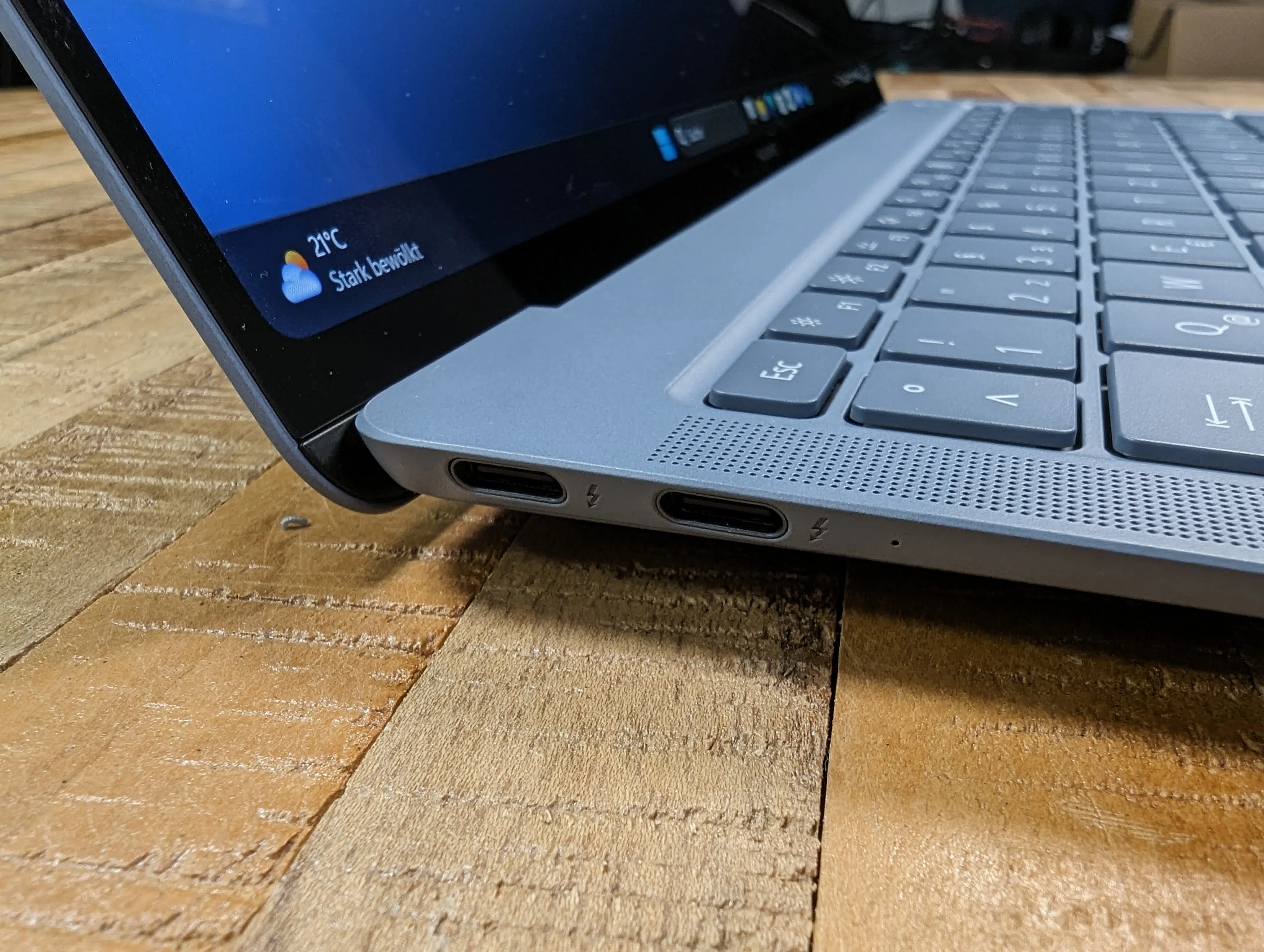 Das Huawei 310 x 222 x 13,5 mm große MateBook X Pro 2024 kommt mit Tastaturbeleuchtung. An Bord sind 2 Thunderbolt 4 Anschlüsse an der linken Seite sowie ein USB-C-Anschluss. Außerdem gibt es einen „Privacy Switch“ für die 1080P Webcam.