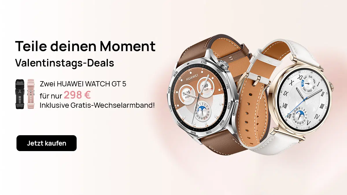 Wer sich vielleicht zusammen mit seinem Partner vorgenommen hat, wieder etwas fitter zu werden, kommt an einer Smartwatch kaum vorbei. Um direkt beide Partner auszustatten, gibt es ein Huawei Watch GT 5 Bundle bestehend aus zwei Smartwatches in 41 mm und 46 mm mit zwei zusätzlichen Armbändern. Damit seit ihr auch nah am idealo Bestpreis, wenn man beide Geräte einzeln kaufen würde. Rechnet man die extra Armbänder dazu, ergibt sich ein sehr guter Bundle-Preis. Die Huawei Watch GT 5 haben wir ausführlich getestet und sie konnte sich im Test als schicke Smartwatch mit bis zu 1,43″ AMOLED Display mit präzisem Tracking beweisen. Das Bundle ist in Schwarz, Weiß und Blau erhältlich.